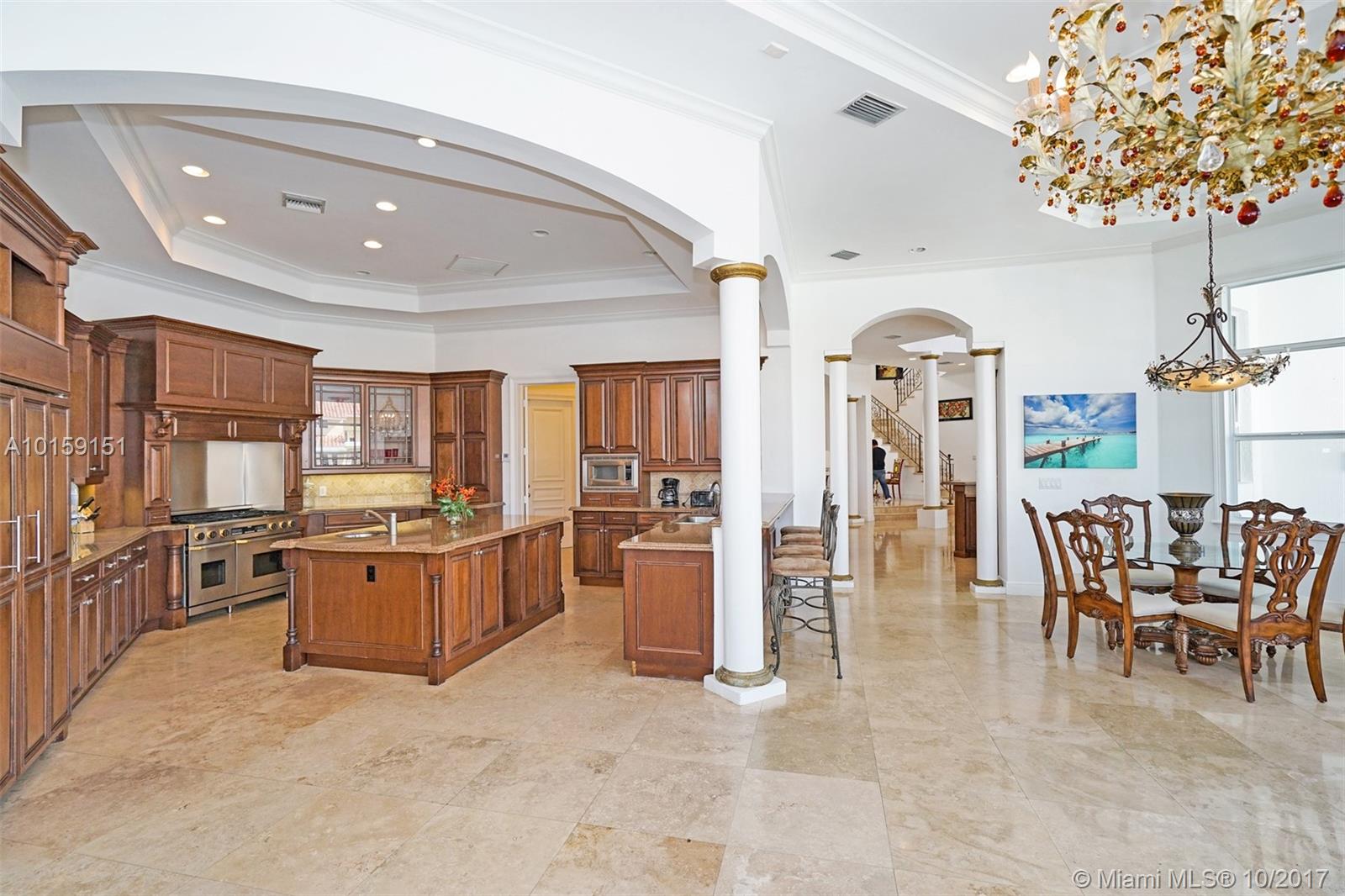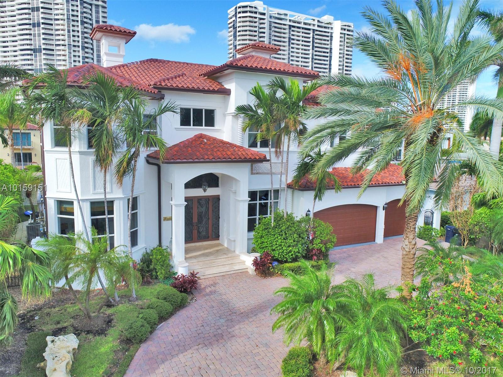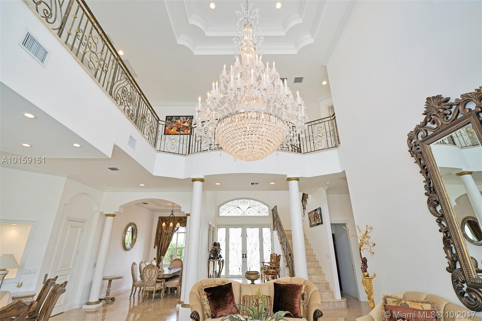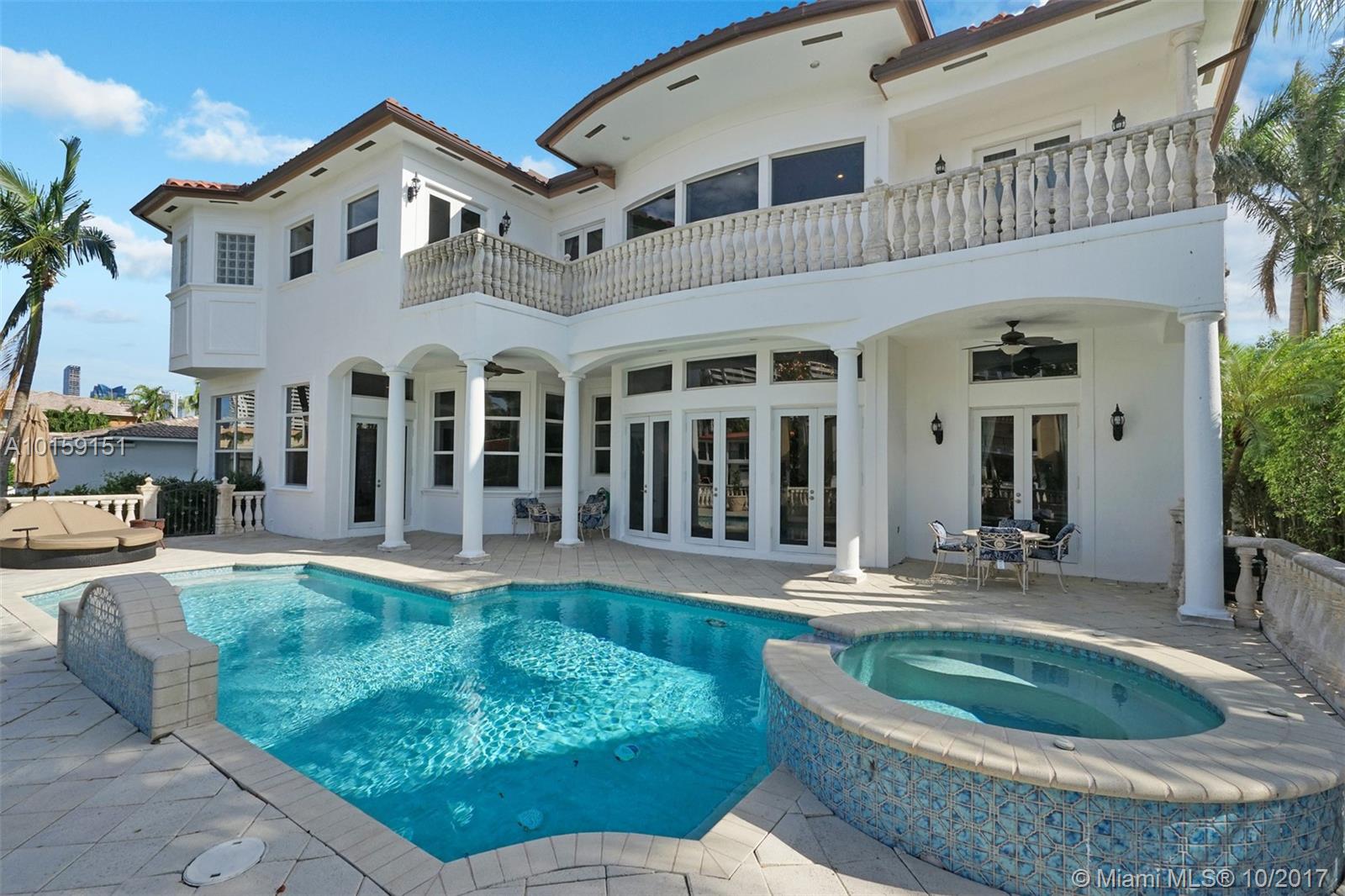 Magnificent 2 story Mediterranean-style waterfront estate w/ 80ft dock no fixed bridges to the ocean access, built in 2003 with many custom features throughout. This 5bdr 4 1/2bath property has open & spacious floor plan with grand foyer, elevator, vaulte d ceilings, columns, gourmet kitchen w/ custom cabinetry, grand master suite,office, Media room h/pool,Jacuzzi, 3 car garage. This property is located in the guard-gated community of Eastern Shores.