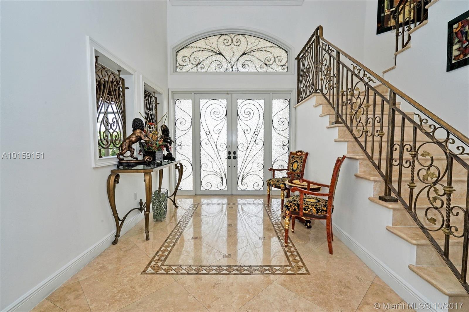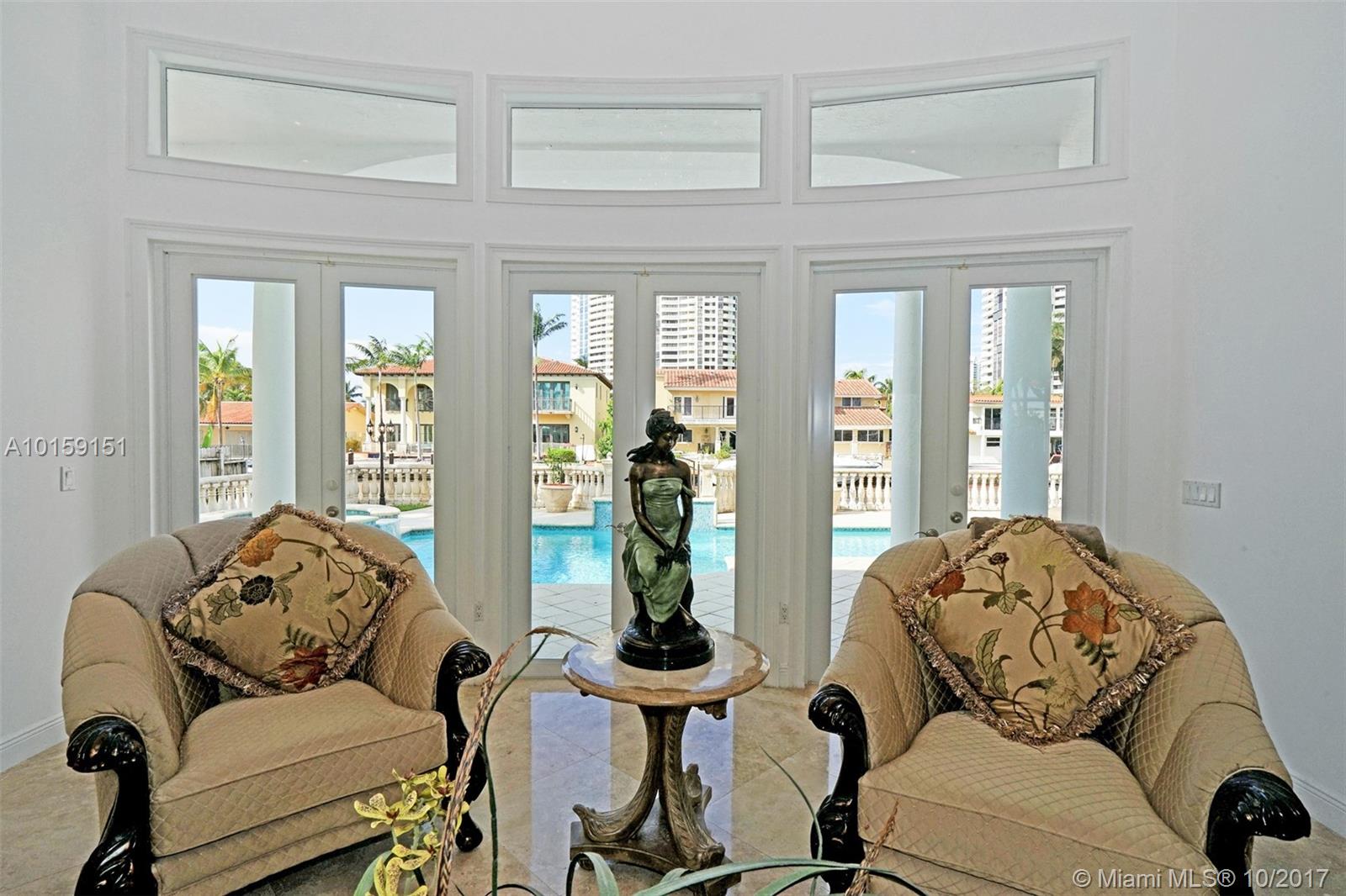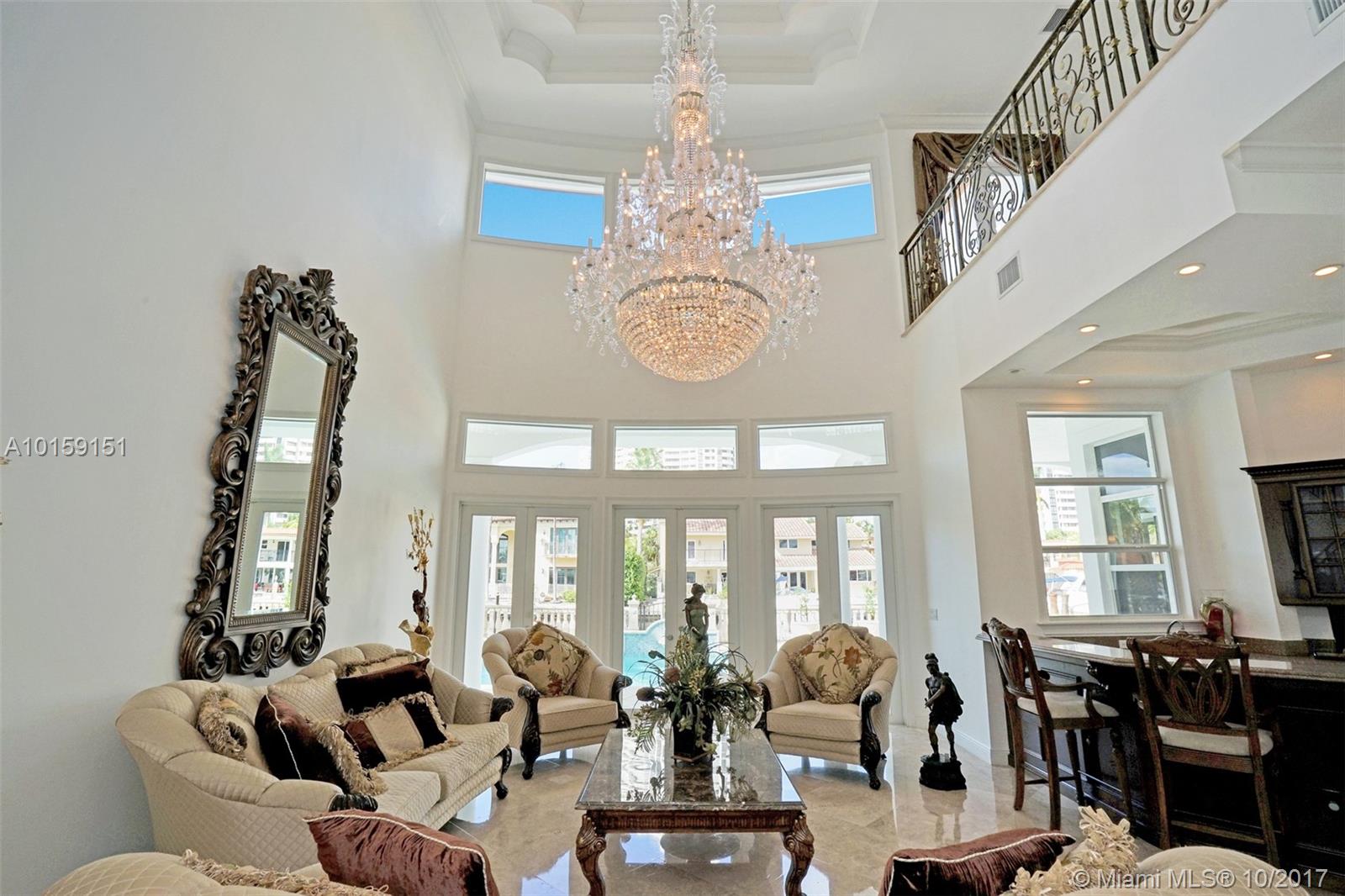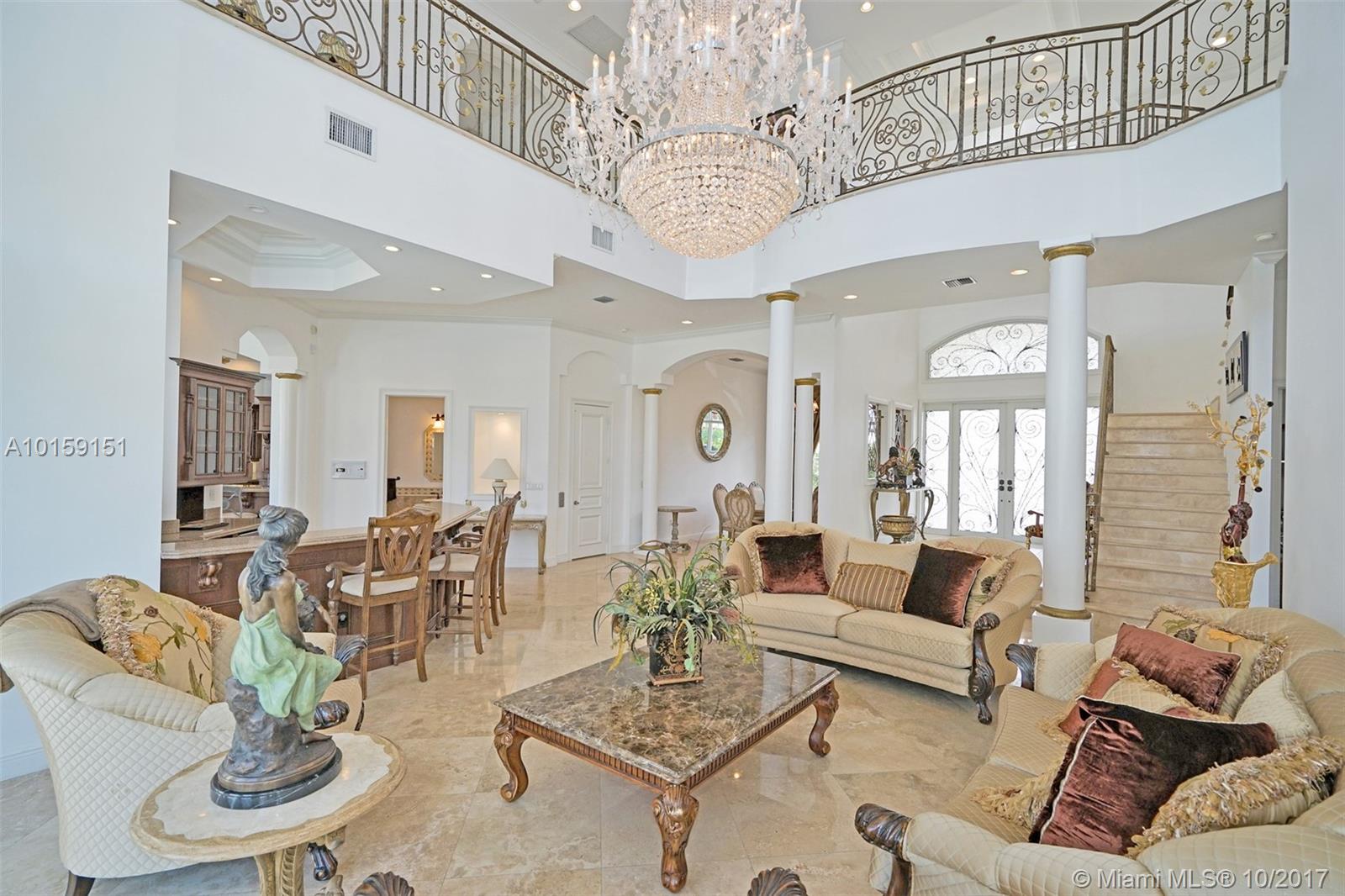 Magnificent 2 story Mediterranean-style waterfront estate w/ 80ft dock no fixed bridges to the ocean access, built in 2003 with many custom features throughout. This 5bdr 4 1/2bath property has open & spacious floor plan with grand foyer, elevator, vaulte d ceilings, columns, gourmet kitchen w/ custom cabinetry, grand master suite,office, Media room h/pool,Jacuzzi, 3 car garage. This property is located in the guard-gated community of Eastern Shores.