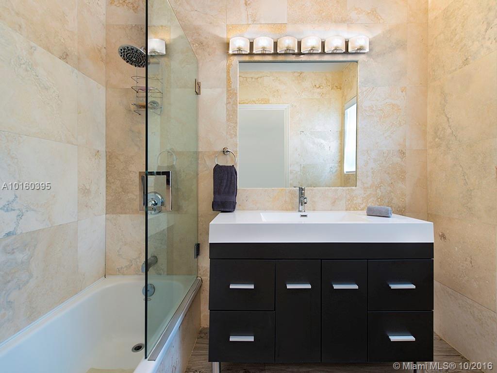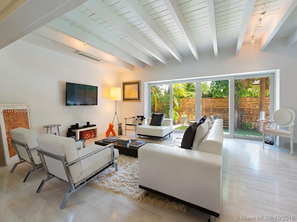 Best buy In Bay Harbor Islands! Sleekly renovated & move-In ready steps from shops, temple, beach. Pristine open LR/DR/FR w/beamed soaring ceilings, whitewashed maple floors & large glass doors leads to pool/hot tub w/shower & expansive deck In private, fenced yard. New kitchen w/glass porcelain tile floor, quartz & black granite counters, gas range, SS appls. 2 new designer baths. 3 large beds, master w /dressing room. Updated electric. A/C 4 years. Some Impact windows. Flexibility to customize/expand.