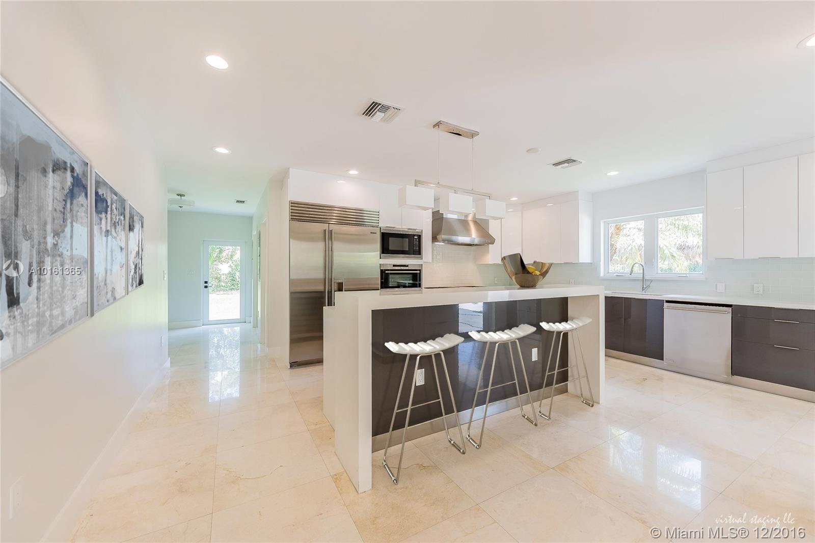 Luxe-modern, brand new, 6 bd/4 ba, 1 acre Pinecrest Estate. New electrical, mechanical, & plumbing. Chef's kitchen features quartz countertops, Hans Grohe fixtures, state-of-the-art appliances(subzero, Wolf, Miele). 2 bd are master suites, plus 2 offices (study room + craft room), white marble floors. Dramatic impact windows/doors creating a seamless integration of home's green spaces. Pre-wired smart home. Expansive backyard w/pool & spa, limestone deck and tiki, perfect for chic Miami soirees.