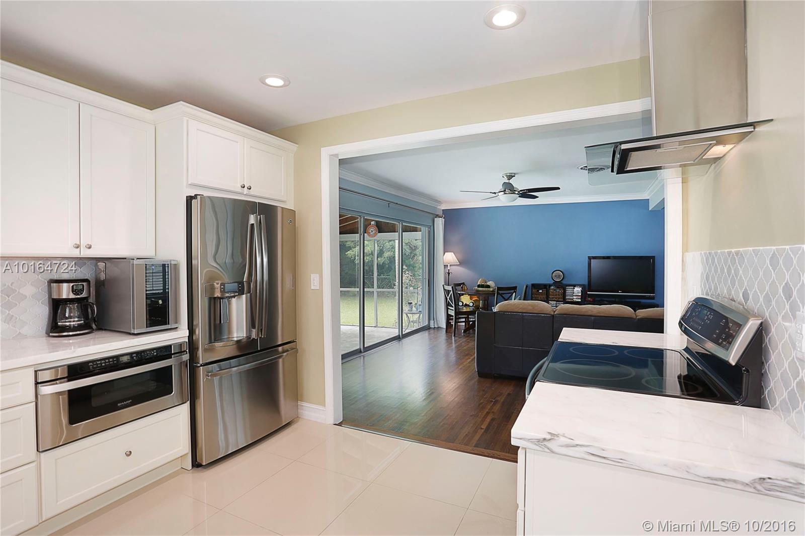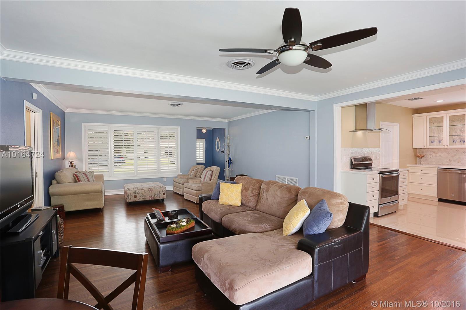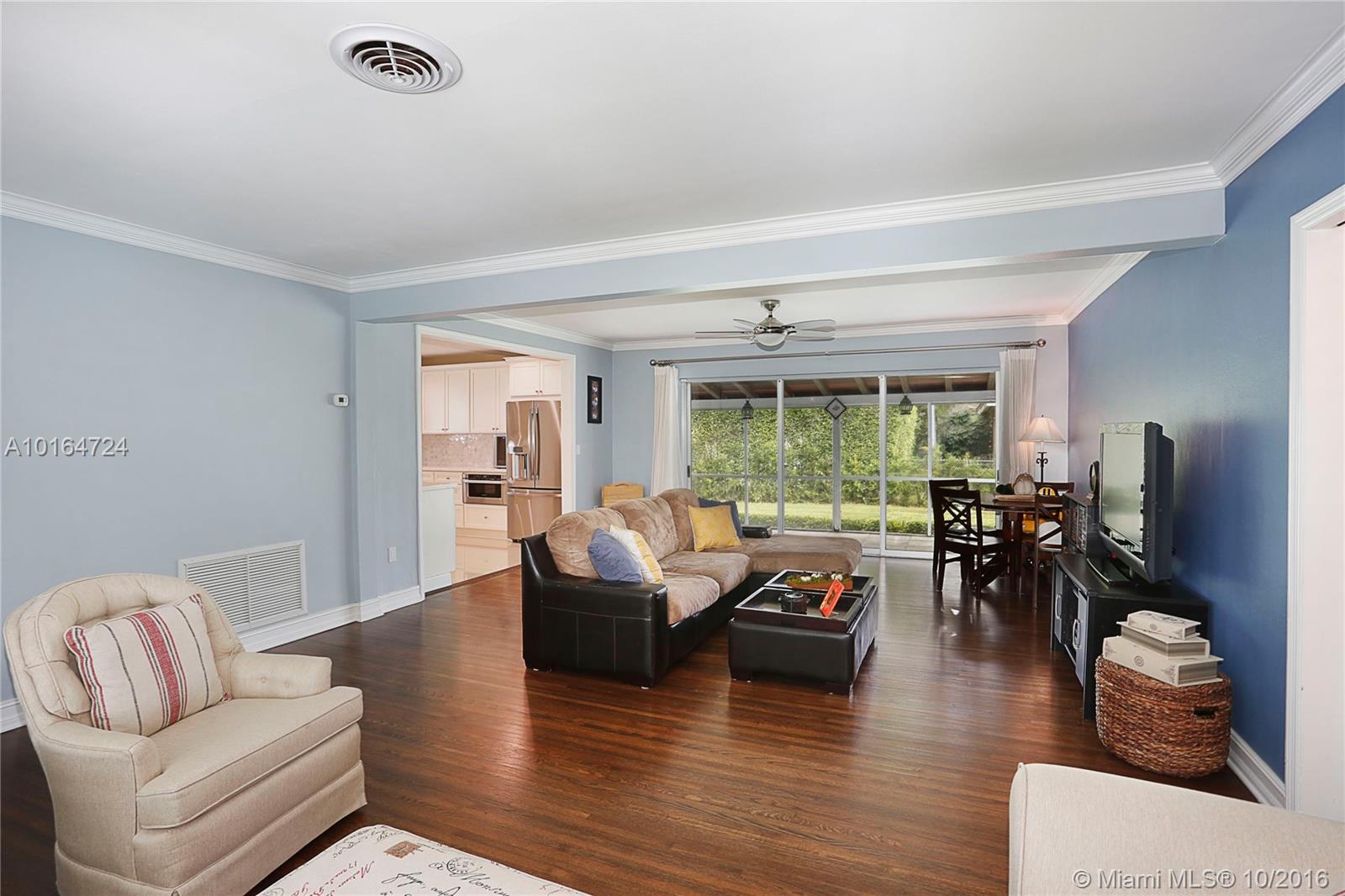 This absolutely gorgeous home has been beautifully and lovingly updated and is situated ideally in the heart of the Gables. The home features open living and dining area, refinished and stained hardwood floors throughout, beautifully renovated marble kitchen with stainless appliances, lots of storage & open feel, gracious bedrooms & 2 renovated baths. Also notable are the impact windows, spacious lot w/ room for a pool, screened patio and 1 car garage. This home is immaculate and truly special!
