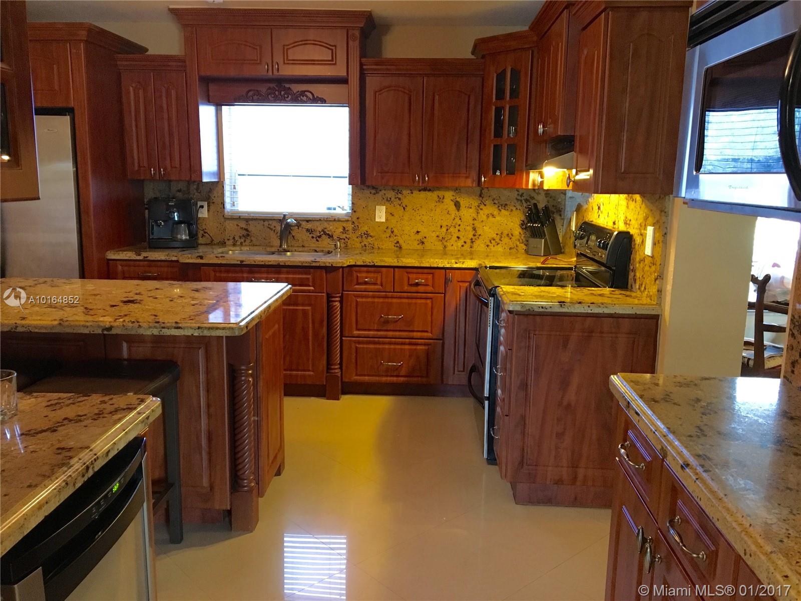 Beautifully updated home in Palm Springs North (two blocks from Miami Lakes), equipped with top of the line stainless steal appliances and granite counter tops. Master bedroom features large walk in closet with built in storage. Spacious living area featuring a granite and stone fireplace with two French doors leading out to paved backyard, salt water pool and spa, great for entertaining and with enough room for a boat. Dream home!