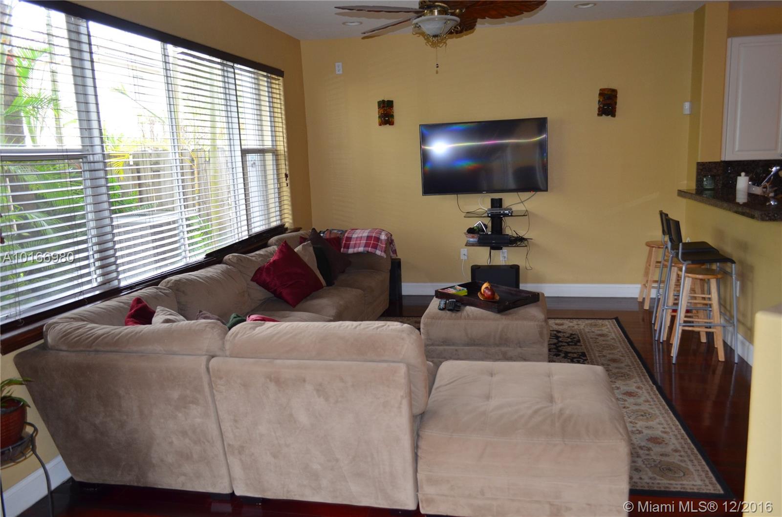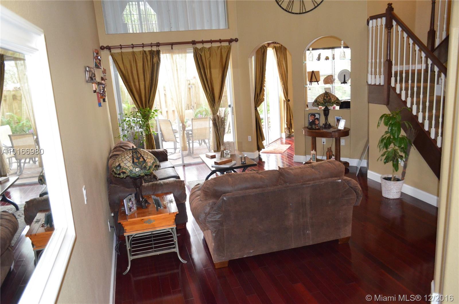 Impeccable move in ready. This beautiful 2 story, 3/2.5 home features, JATOBA Brazilian cherry wood floors. 20 ft ceilings, Foyer entry. formal din, living, family rm, Gourmet kitchen island, SS GE appl.granite counter, pantry, fenced BBQ yard w/pavers, palm tree.2nd Fl. includes loft which may be used as a 4th bedroom or office. ,Mstr. suite, CA style closet, upgraded bath, laundry rm, accordion shutters.