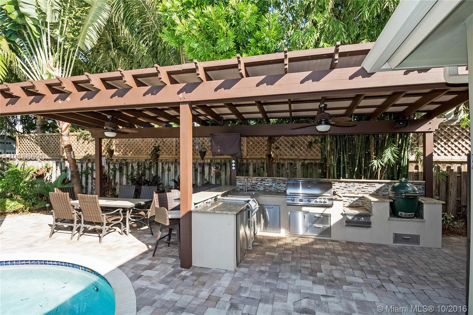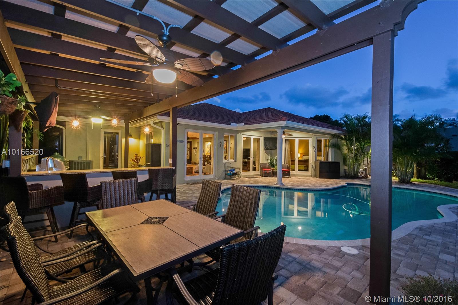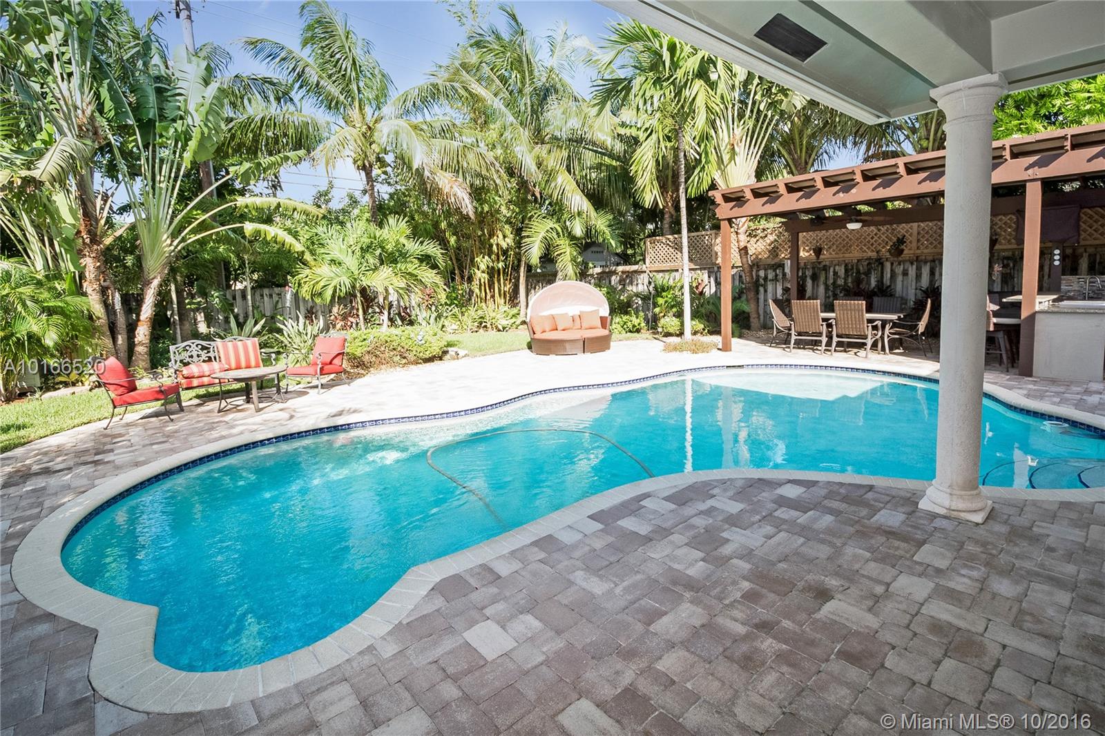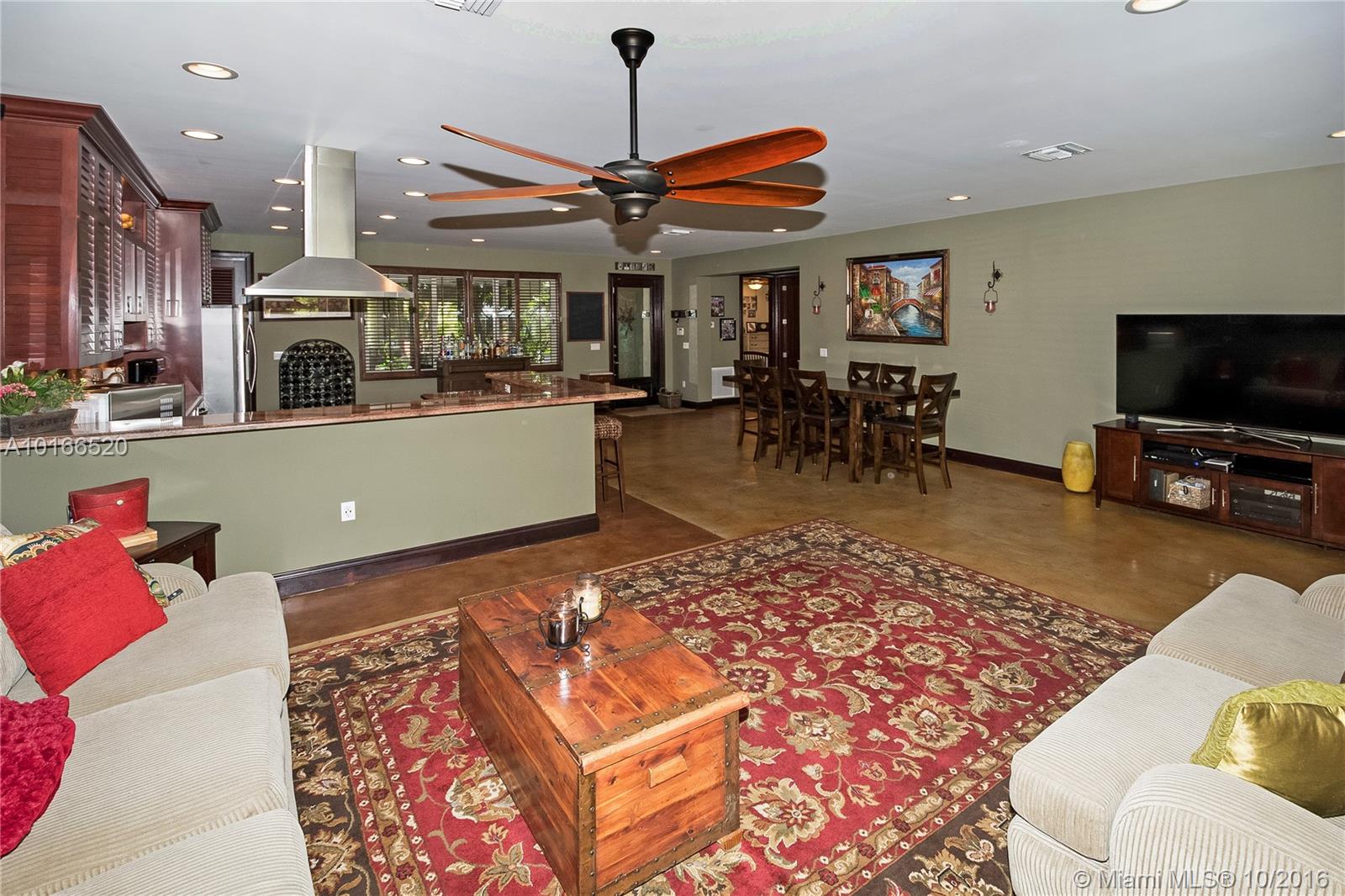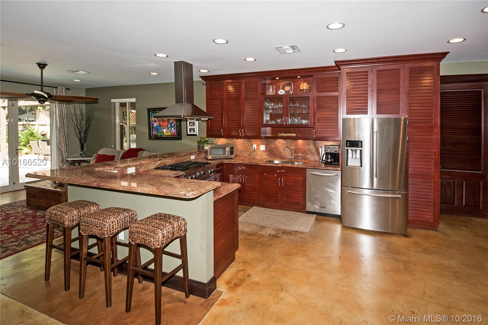 This sensational Poinsettia Heights home is a one-of-a-kind gem! Rare stained pressed concrete floors throughout showcase the home's expansive open plan lay-out. 3 Large bedrooms, including 2 Masters with en-suite bathrooms, walk-in California closets and outdoor patio access. Double French doors invite you to one of the most splendid outdoor areas! Sparkling salt water pool nestled in the large tropical yard and jaw-dropping lavish summer kitchen. Walking distance to Whole foods, dining and entertainment