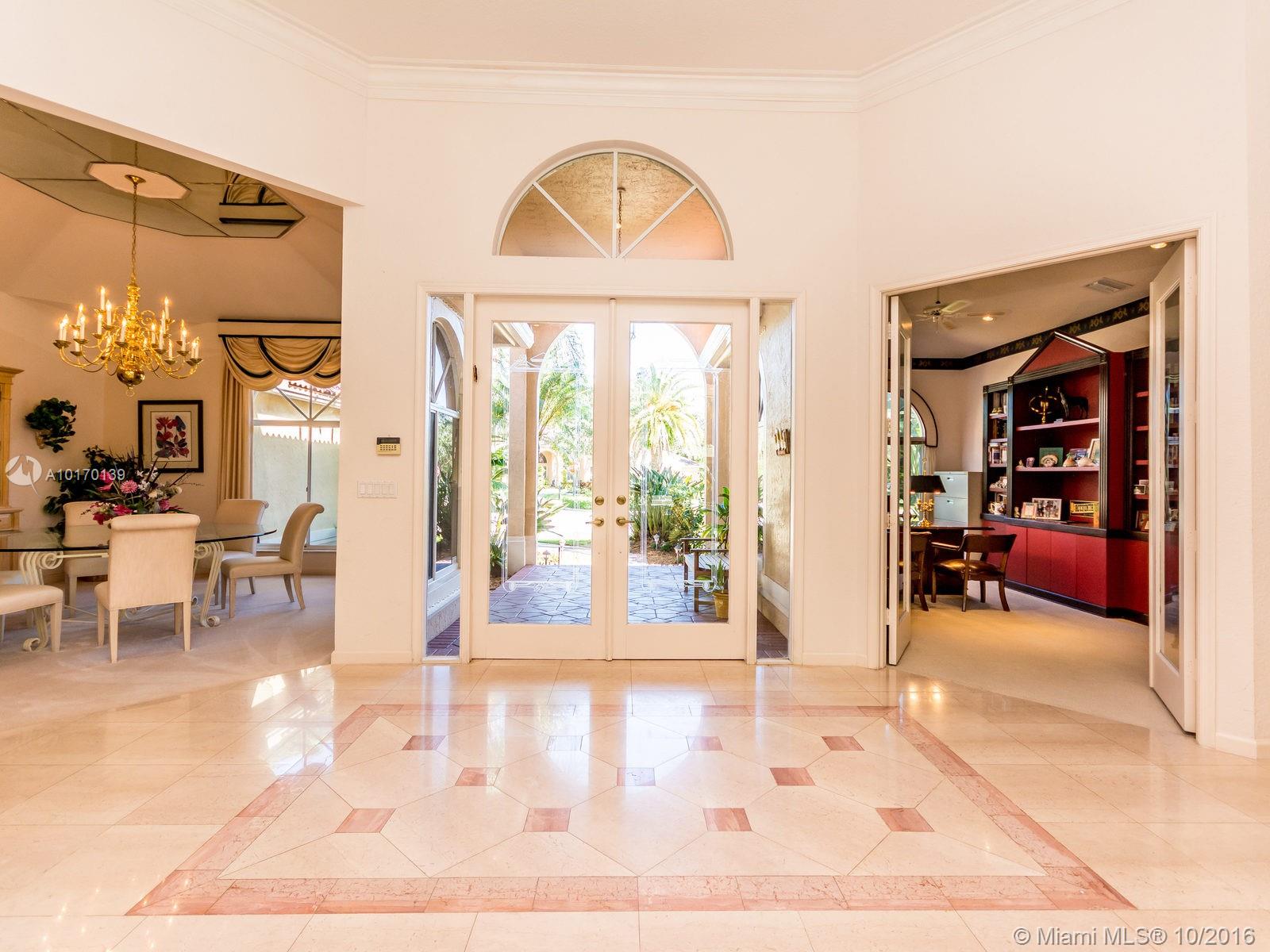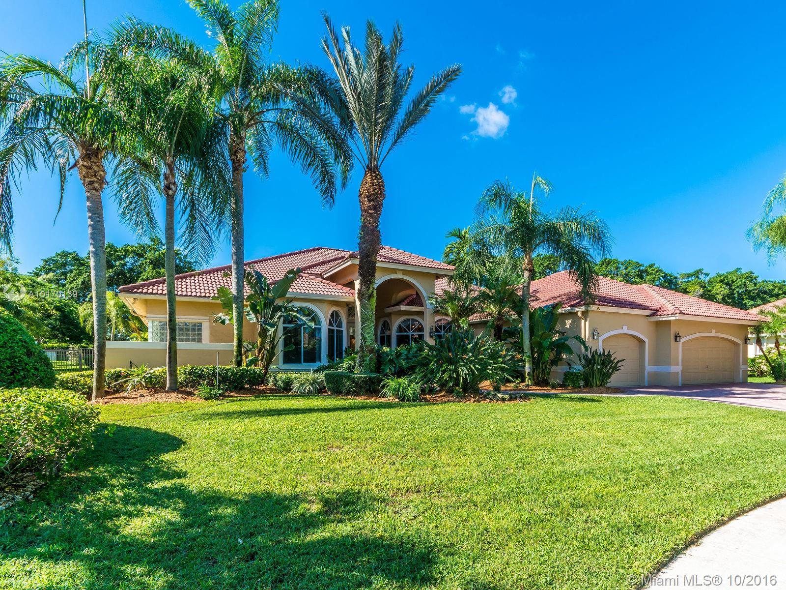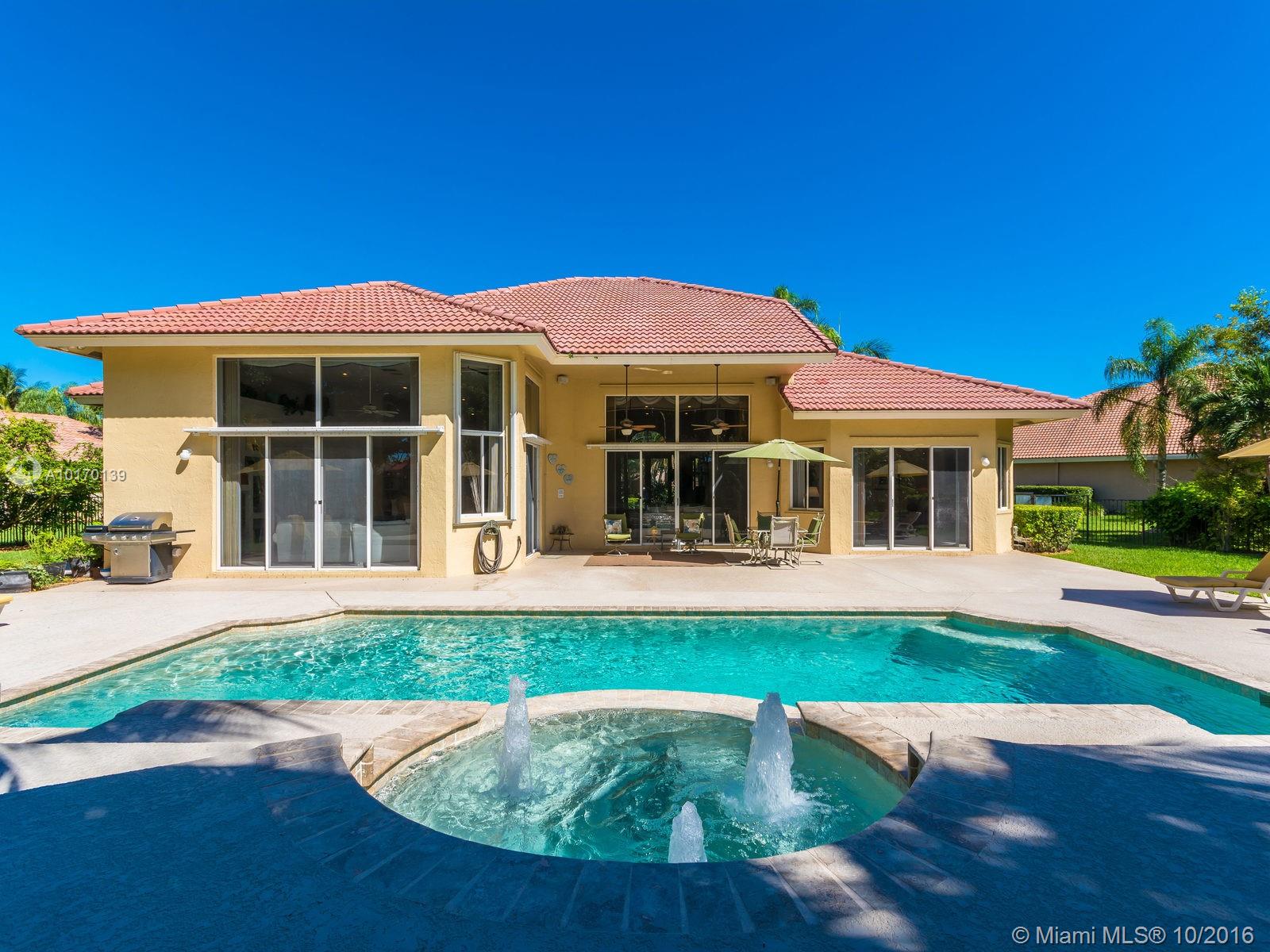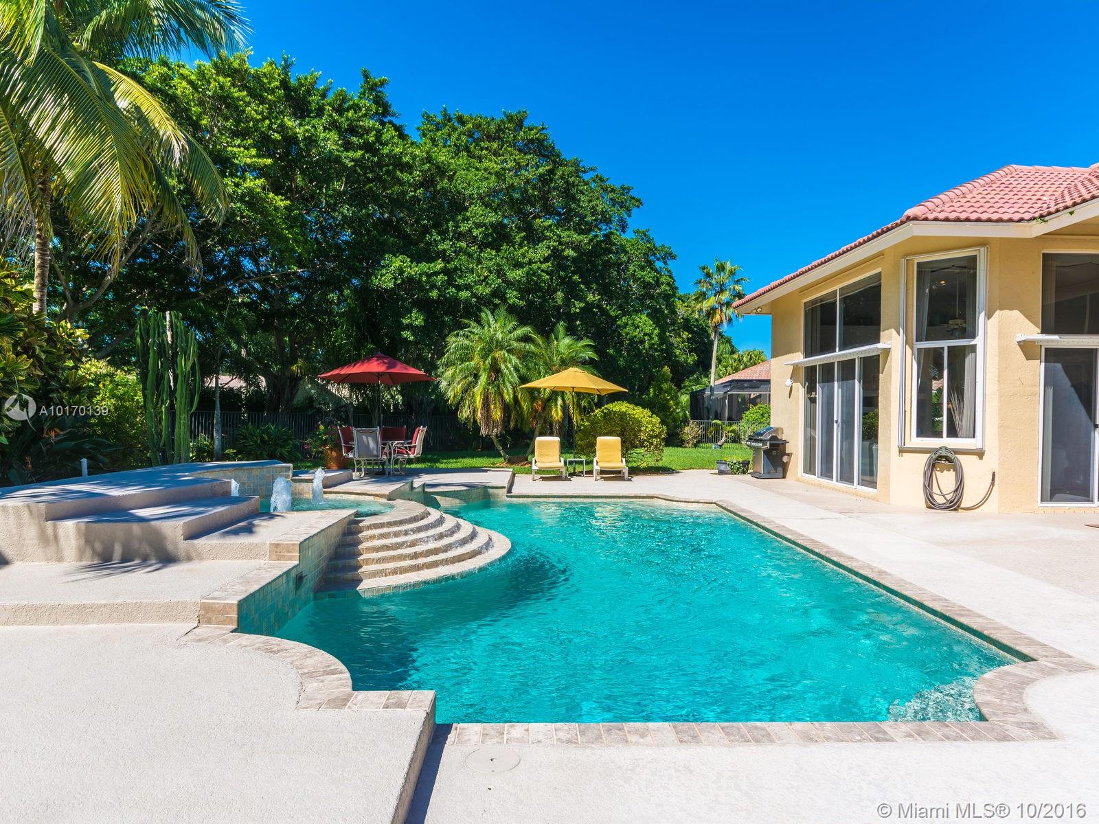 SPECTACULAR 5/3.2 SPACIOUS BUILDER'S MODEL ESTATE/ CUL-DE-SAC/ TWO GOLF COURSES/ HUGE PRIVATE LANDSCAPED PIE-SHAPED FENCED LOT/ NO NEIGHBORS BEHIND/ EXTENDED OPEN AIR PATIO/ RESORT STYLE POOL & SPA/ SOARING CEILINGS/ MARBLE, WOOD & CARPETED ROOMS/ ISLAND KITCHEN/ WOOD CABINETS/ BREAKFAST AREA, SNACK COUNTER & BUTLER'S PANTRY/ SPLIT PLAN/ FORMAL DINING/ NEWER A/C UNITS & WATER HEATER/ WET BAR, OFFICE, CROWN MOLDINGS/ NEW POOL MOTOR/ STORM SHUTTERS/ GUARDHOUSE/ A+ SCHOOLS/ TENNIS & RECREATION/ RUN TO SEE!!