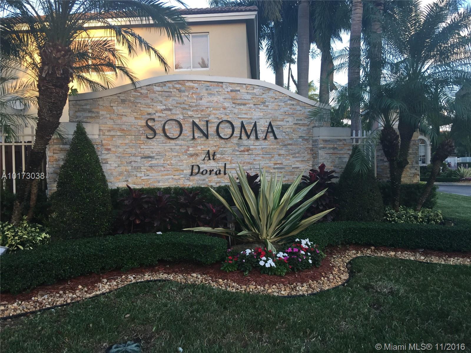 Opportunity! Spacious Townhouse 3 bedrooms and 3 baths, in exclusive gated community Sonoma at Doral. Beautiful gardens and sidewalks to enjoy. Child play area. Near all major highways including the Florida Turnpike (821) and the Palmetto (826) and Dolphin Expressways (836). Great Schools, steps away. Price to sell!