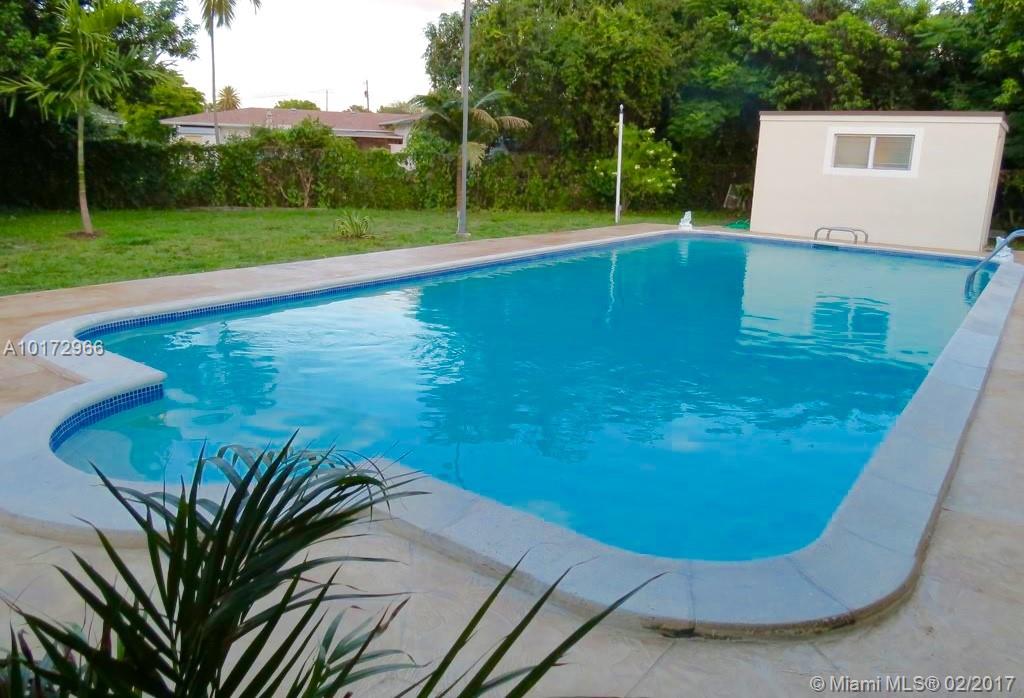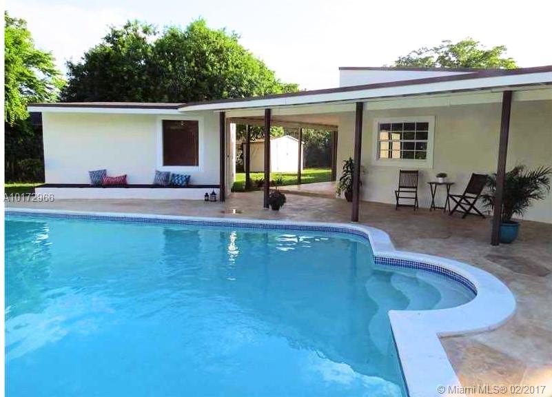 Exceptional Architectural designed home located in Griffing Biscayne Park Estates. Home features vaulted ceilings, over sized pool w/separate pool house, huge yard, excellent for entertaining friends and family! The property has SS appliances, new kitchen w/skylight, granite counter tops, new central A/C, new water heater, travertine and porcelain floors, renovated baths, storage shed, gated private entrance driveway and much more! Split floor plan. Large MB walk-in closet! 15,000 Sq ft of fenced yard!