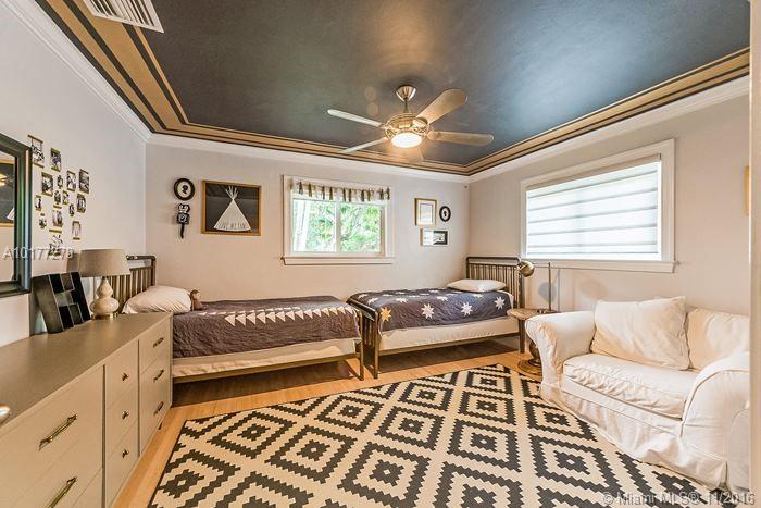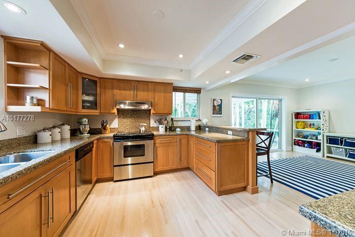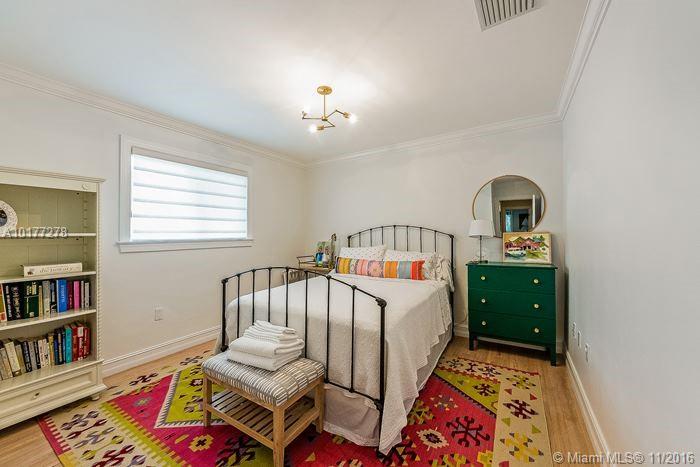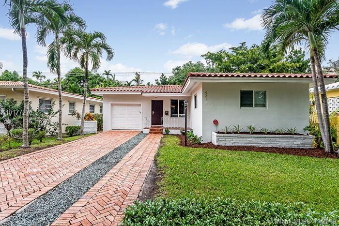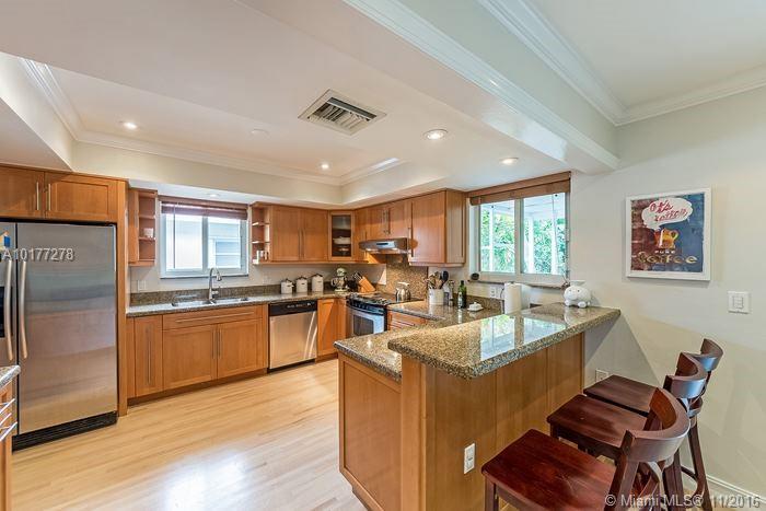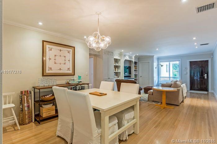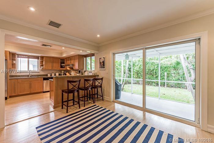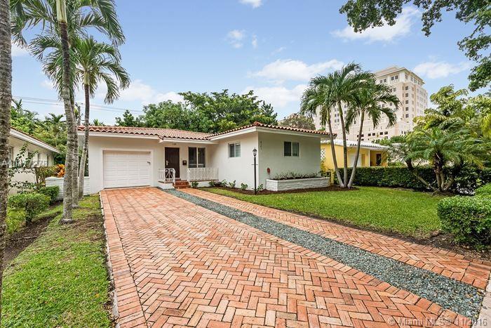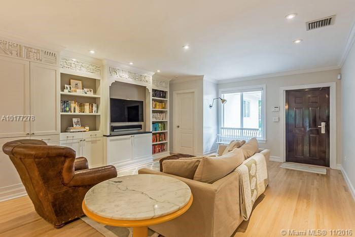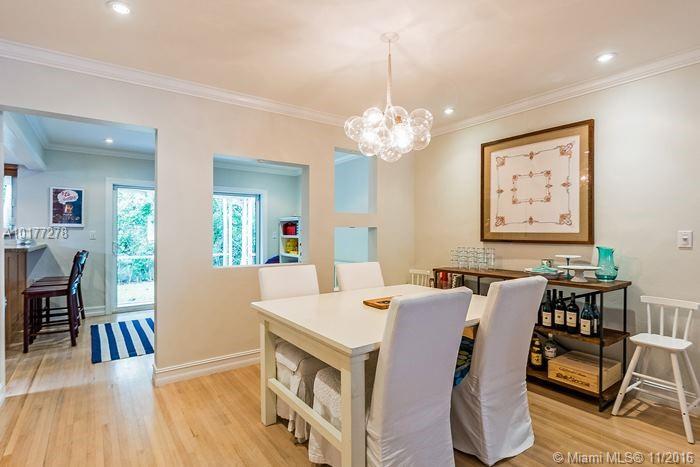Completely updated 3/2 Gables charmer! Light filled home with impact glass, wood floors, crown molding throughout, private master suite, living room with built in cabinetry,new baths,eat-in granite kitchen w/snack counter opens to family rm,indoor laundry rm,1 car gar,covered back porch on pretty lot.Fab location!