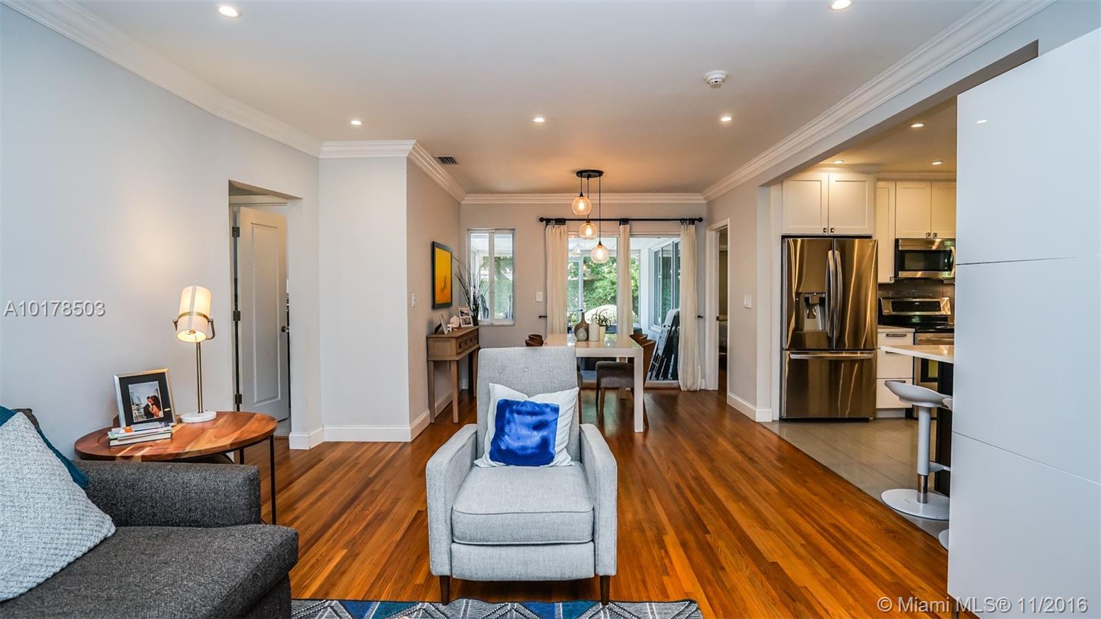 REDUCED! VERY UPGRADED MODERN 3/2 HOME ON A QUIET STREET (CUL-DE-SAC) IN CORAL GABLES. RECENTLY RENOVATED KITCHEN AND BATHROOMS, HARDWOOD & TILE FLOORS THROUGHOUT, SURROUND SOUND, HIGH IMPACT WINDOWS AND DOORS, ENERGY EFFICIENT A/C RECENTLY INSTALLED, ALL NEWER APPLIANCES INCLUDING WASHER AND DRYER, & BEAUTIFUL LUSCIOUS LANDSCAPING BOTH IN FRONT AND BACK. BACK YARD FEATURES A BEAUTIFUL GARDEN AND SCREENED IN PORCH WITH NEW MODERN TILE FLOORING. BACK YARD HAS PLENTY OF ROOM FOR A POOL.