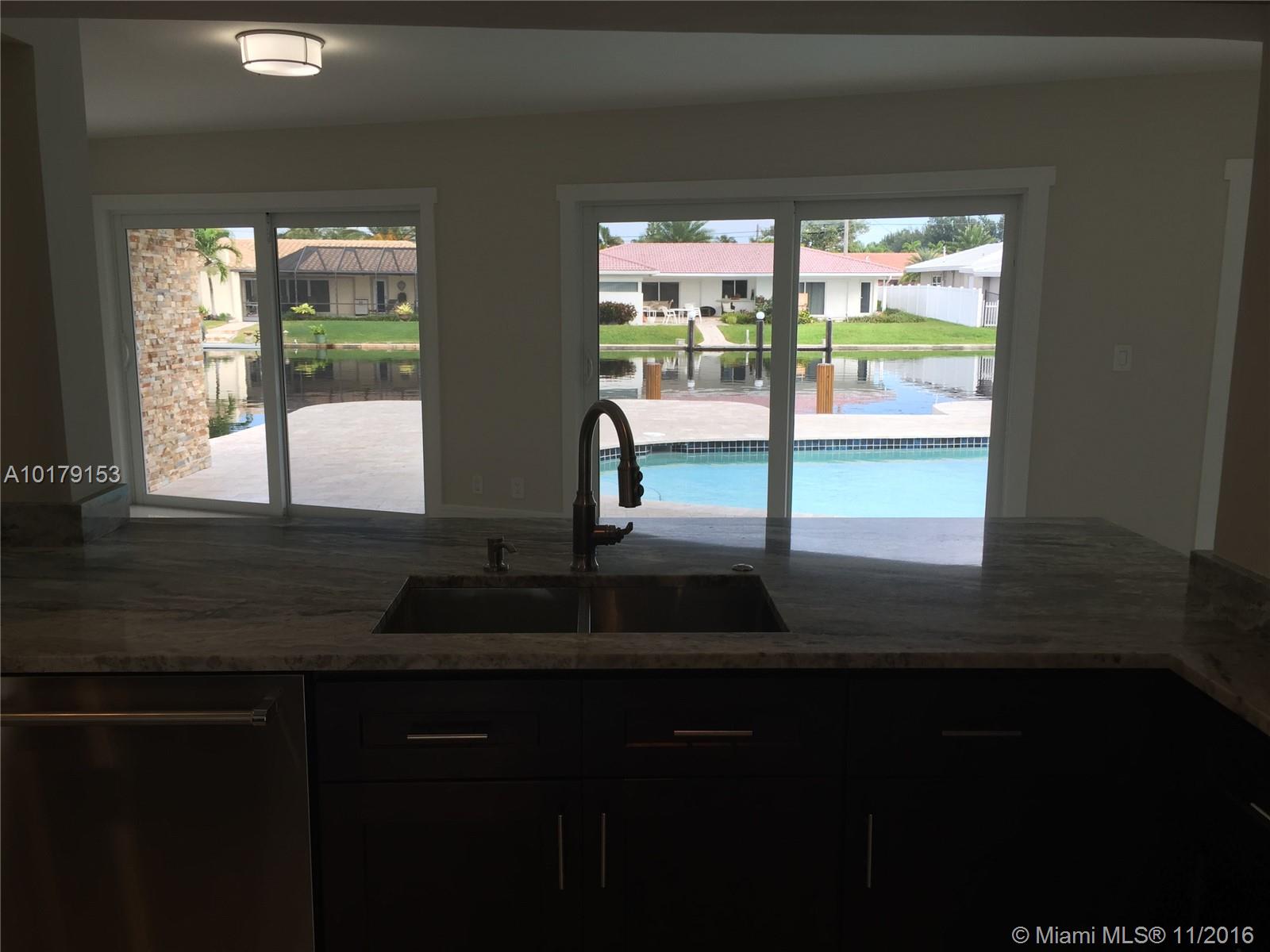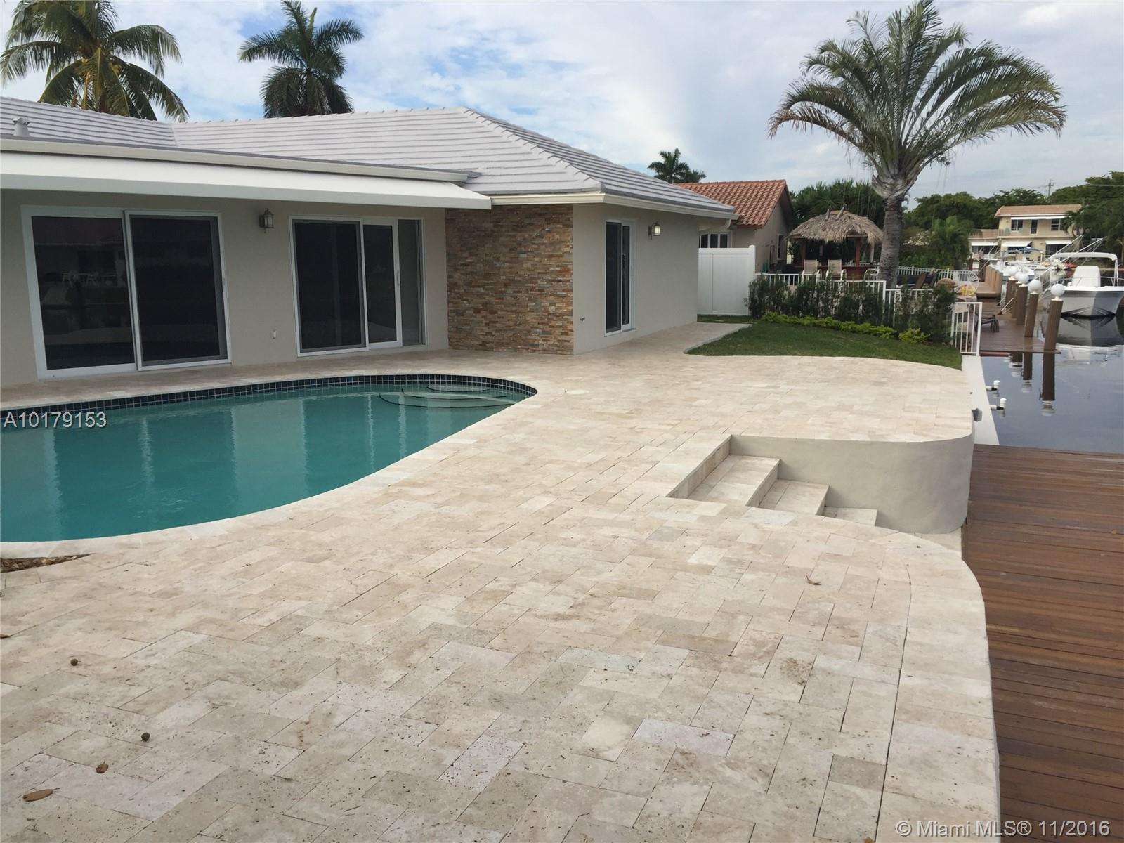 Spectacular Water Views minutes from Intracoastal. Completely remodeled w/city permits. Top of the Line finishes/materials. Open Floor Plan.New AC, Electrical, Plumbing, Pool/Diamond Brite, pumps, filters.New 4 Pillar Boat Dock. Quartzite counters in Kitchen and Bar. Stainless Appliances, Cooking Island. Marble and Glass Accent in baths.Jacuzzi in master. Walk-In Closets in Master,Guest Room.Wine Bar and cooler.Porcelain Floors, Travertine Patio.Hurricane Windows/Doors.Custom Impact Resistant Garage Door.