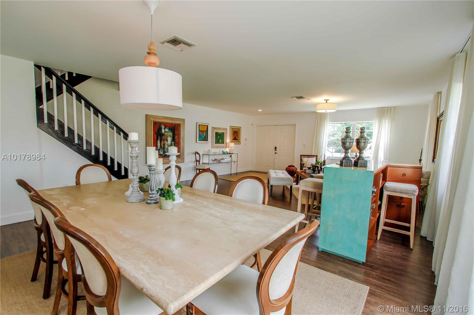 Professionally designed, one of a kind, unique home in Doral Dunes. 5 bedrooms, 3 baths, with one bedroom and bath on first floor. Garage was professionally converted and permitted with a bonus sitting room and bedroom. Special redesigned bonus room on second level is perfect for additional entertainment space for family. Property is on oversized corner lot with expansive landscaping, heated pool, gazebo and canal view. Nothing has been spared, updated kitchen, baths, floors and overall design.