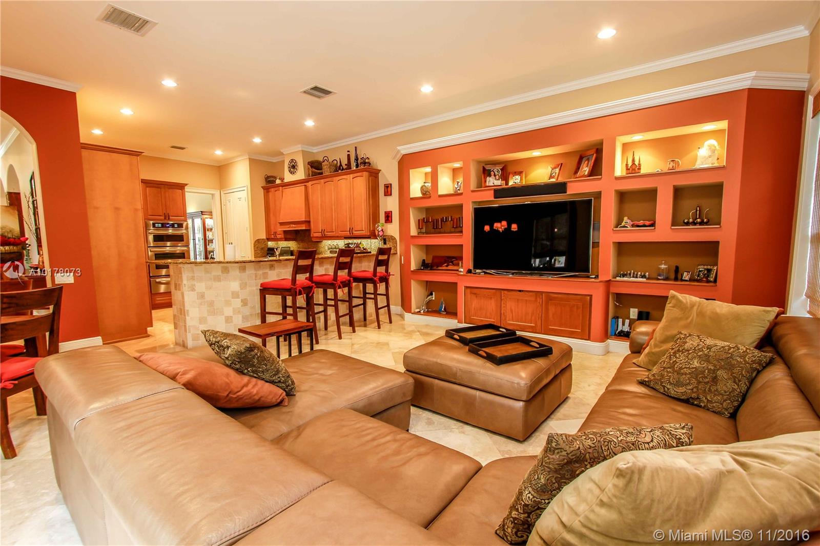 Spectacular 2 story estate in Harbor Islands exclusive gated community. 5 BR/4.5 BA + Den, oversized 2 car garage. 1/4 acre lot w/4200 sf of living area. Lush private backyard, heated pool & covered terrace. Impact windows/doors, vaulted ceilings. marble & hard wood flooring, smart lighting & custom window coverings. Open kitchen w/ upgraded appliances leads to family room. Formal dining room w/ wood trimmed columns. Relaxing master suite w/ private balcony. Enjoy amenities incl: gym, spa, marina & more.