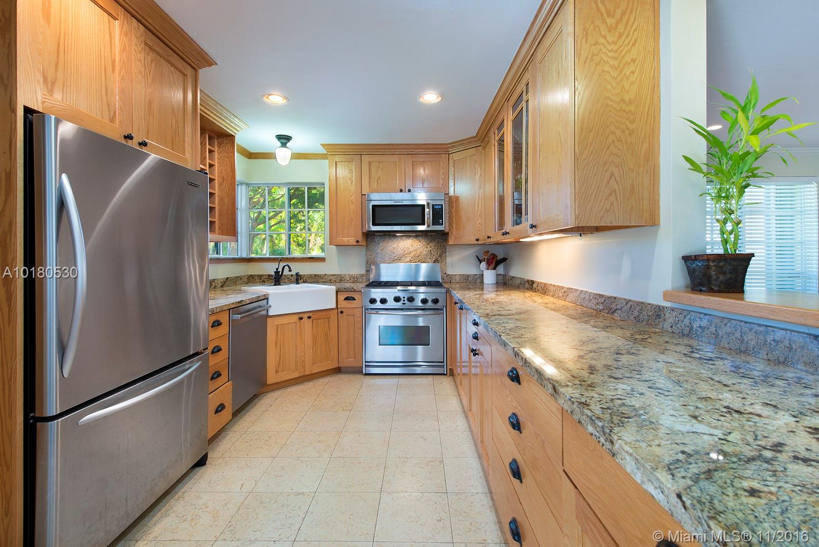 You'll feel right at home when you step inside this gem in Miami Shores. Gorgeous wood floors, large open spaces, gourmet kitchen, huge Master Bedroom, all overlooking expansive back yard. Quiet cul-de-sac street makes this your private oasis near the city. Gas kitchen with commercial grade viking stove/oven, upgraded appliances and granite countertops. Also features 1 car garage. Some impact doors, all others have accordion hurricane shutters. Plus a sprinkler system and a generator included.
