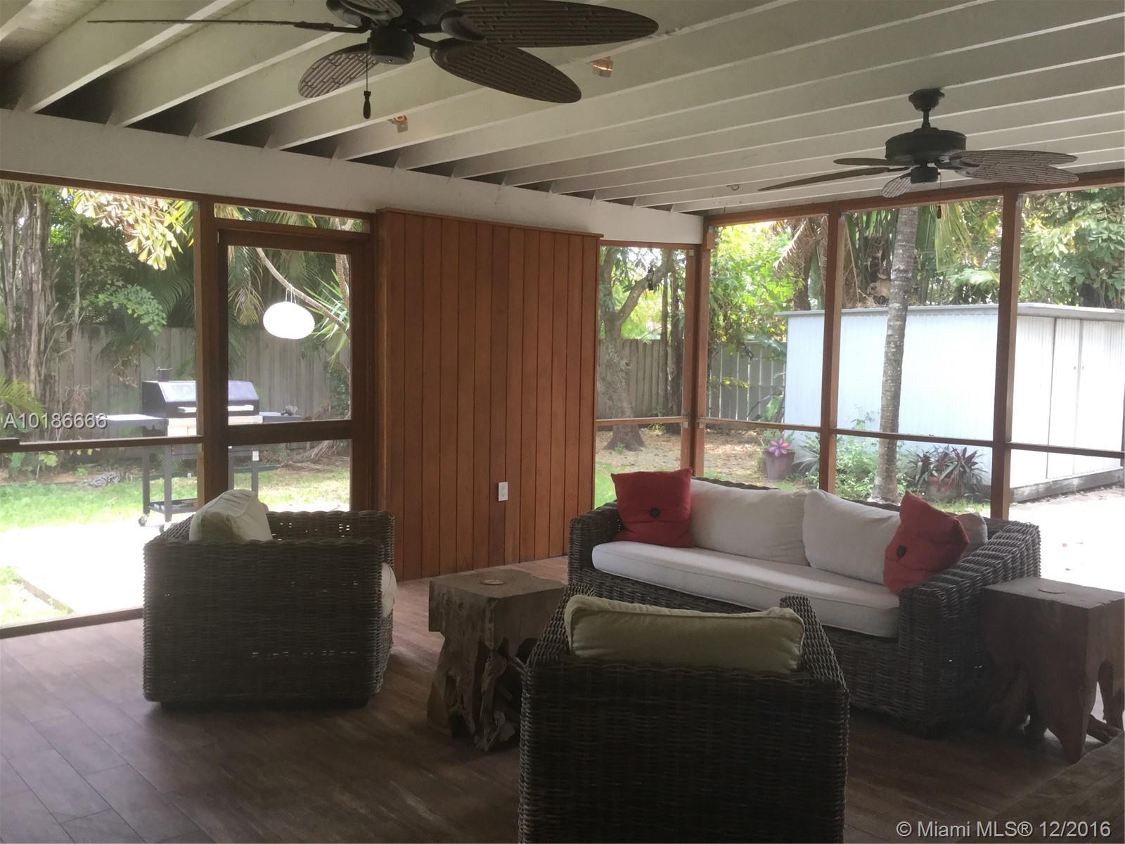 This Beautiful home features 3 BR & 2 updated BR. Updated Kitchen features granite countertops, stainless steel appliances, gas stove, glass tile backsplash, lots of cabinet space & oversized Family RM w/bathroom & walk-in closet, could easily be converted into an oversized Master Suite, Wood floors in living room, tankless water heater. Impact windows. Approx. 400 Sq.ft Screened in covered patio. Fenced in backyard w/electric gate w/parking for 2 cars w/Alley access Tropical landscaping. Front porch.