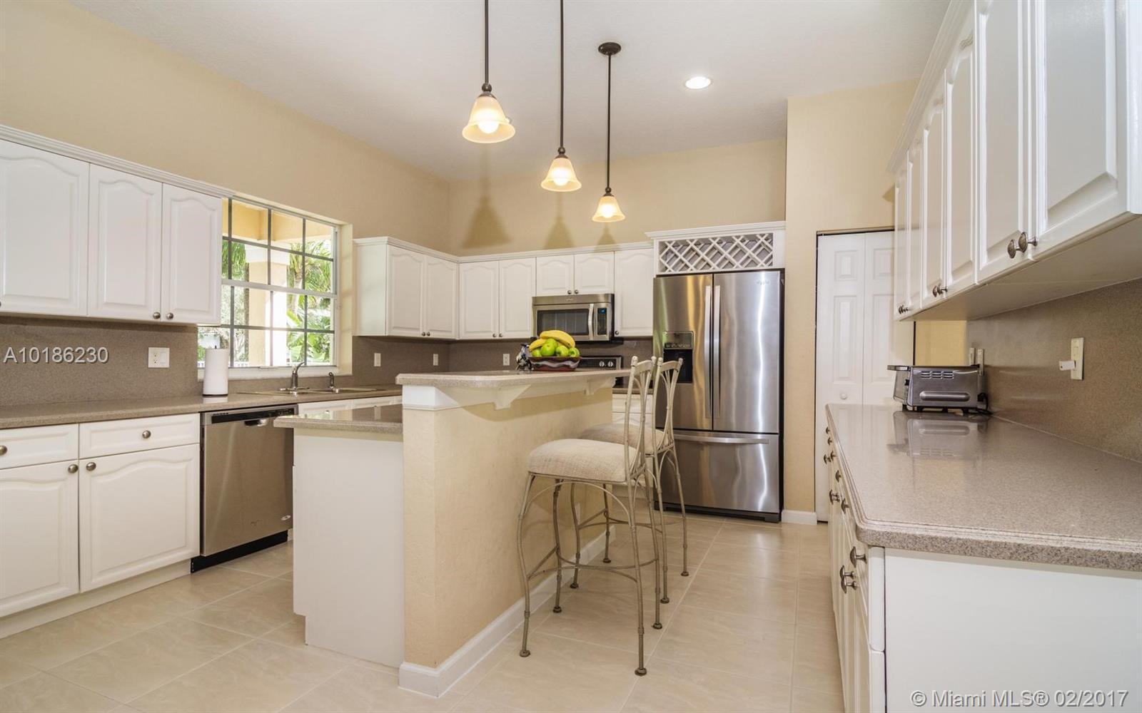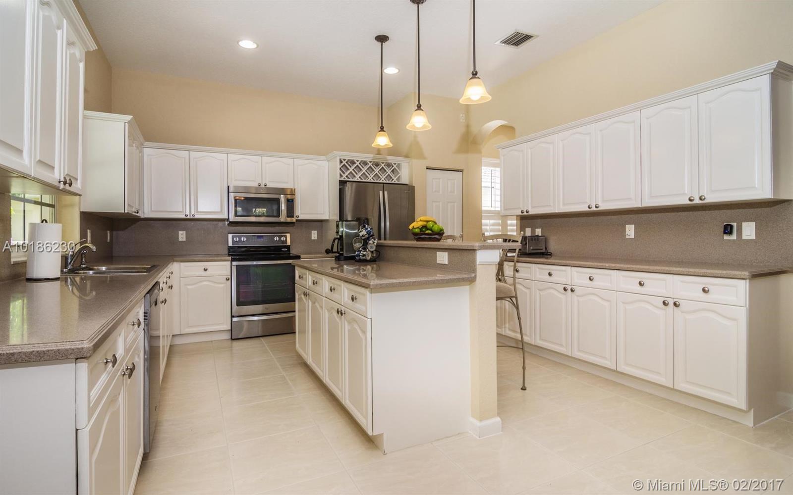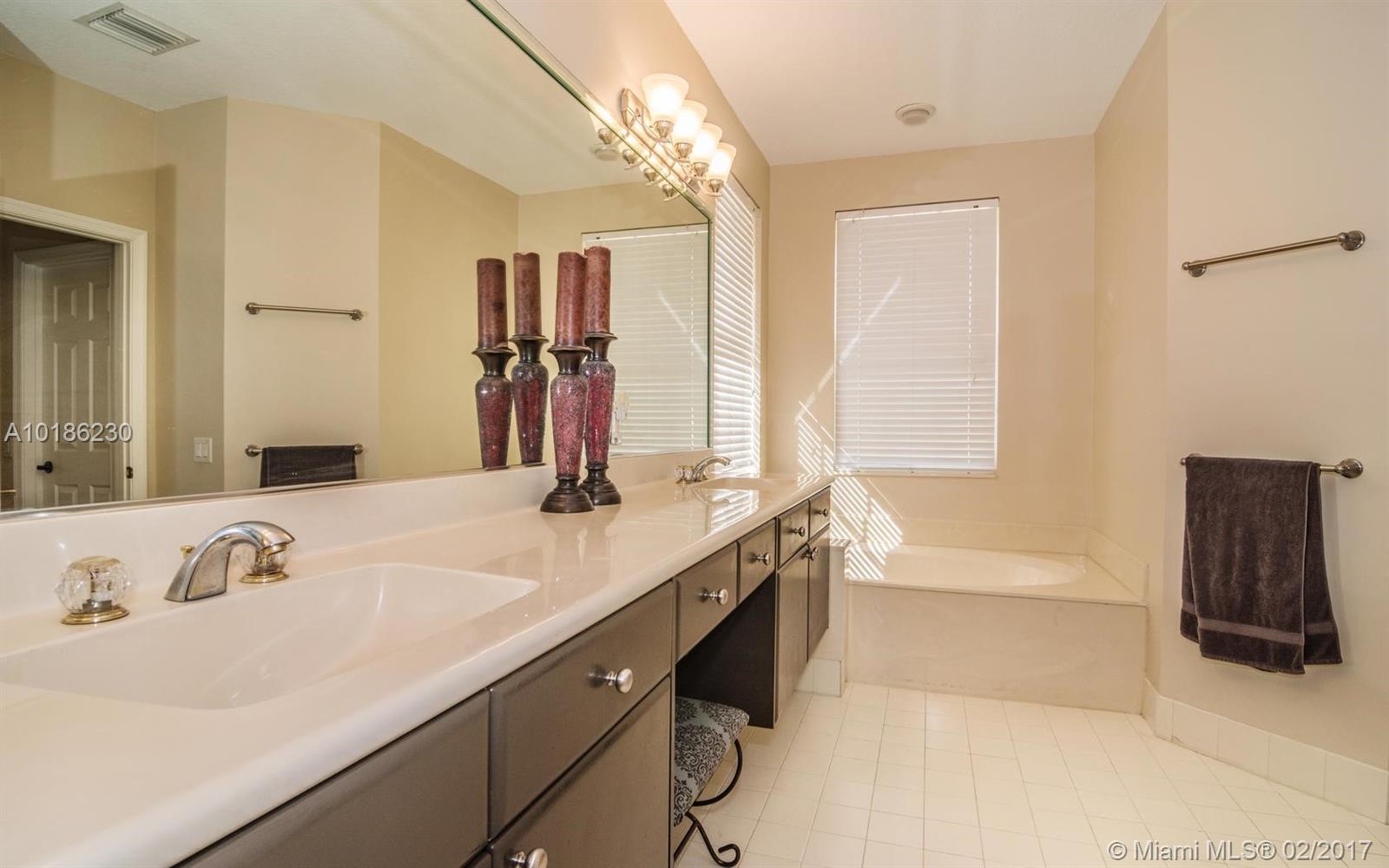 Like New Construction in Weston Hills. Popular Santa Cruz model with BRAND NEW custom Saltwater system, heated pool w/expansive covered patio. No neighbors for pure privacy. Enter this beauty via Palm tree lined street. A Grand 2 story entry foyer welcomes you. White contemporary cab.in kitchen w/center island. Decorated in neutral tones, tile floors on 1st level & wood up. Full bed & bath down. MB is up w/sitting room. Freshly painted interior, 2 New A/C, plantation shutters, walk to community park.
