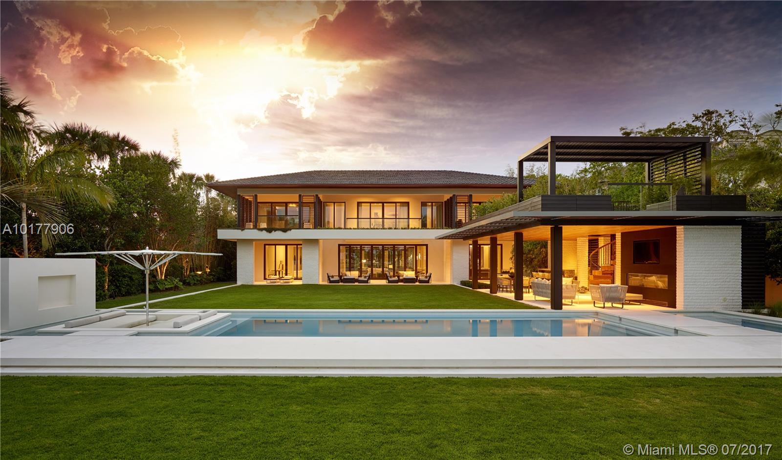 This 9 bed, 10.5 bath limestone estate is the latest edition to Pine Tree Drive. Designed with elegance by Cesar Molina, furnishings include Holly Hunt & Christian Liagre, carefully selected wall treatments, millwork & exquisite textiles by Holly Hunt. The residence embodies a refreshing emphasis on the value of meditation with Curmaru wood overhangs and mahogany windows & doors. The tropical modern design blends interiors and exteriors with an expansive courtyard in addition to a two level gazebo with a full kitchen, bathroom, outdoor shower & fireplace.