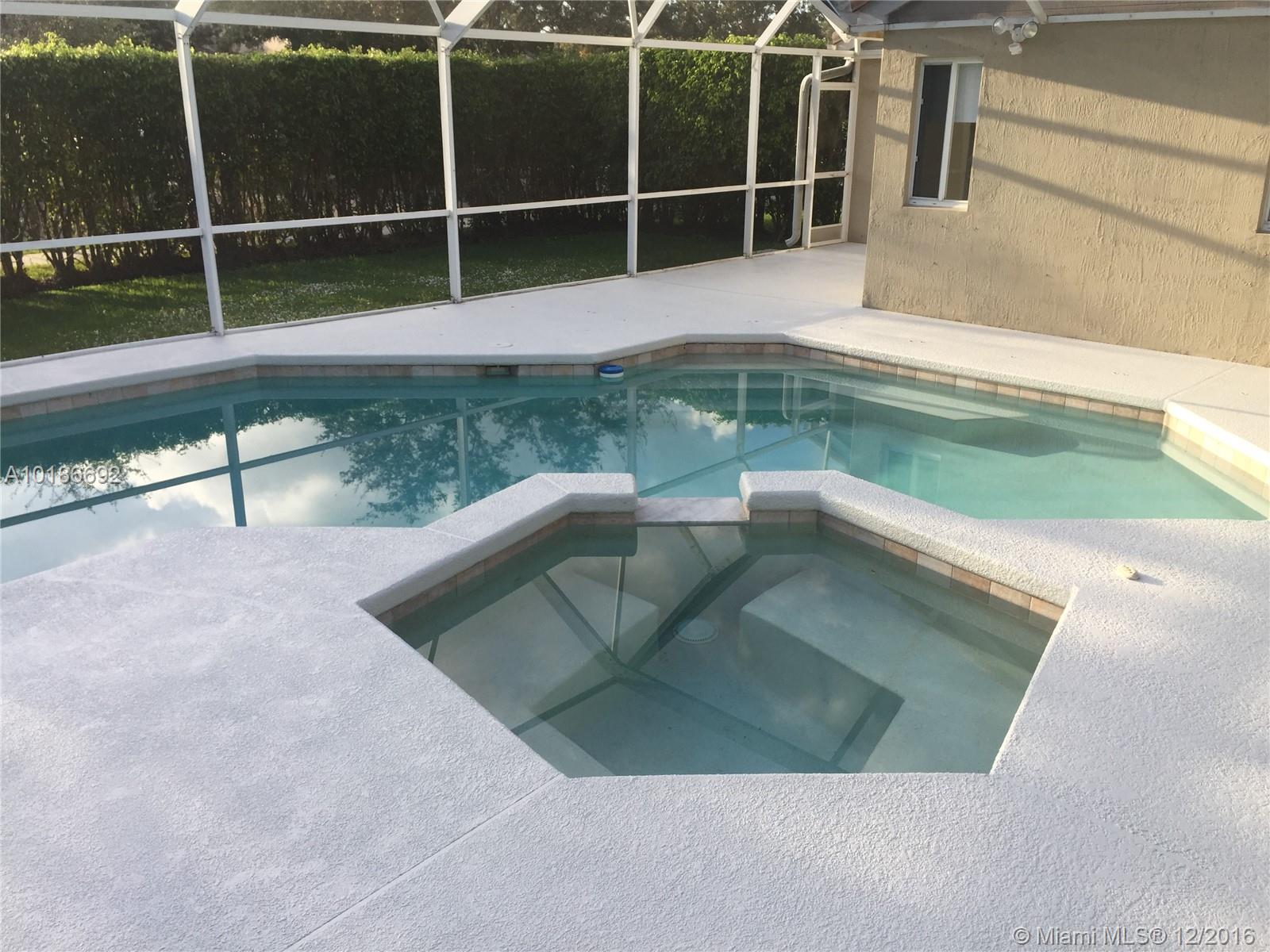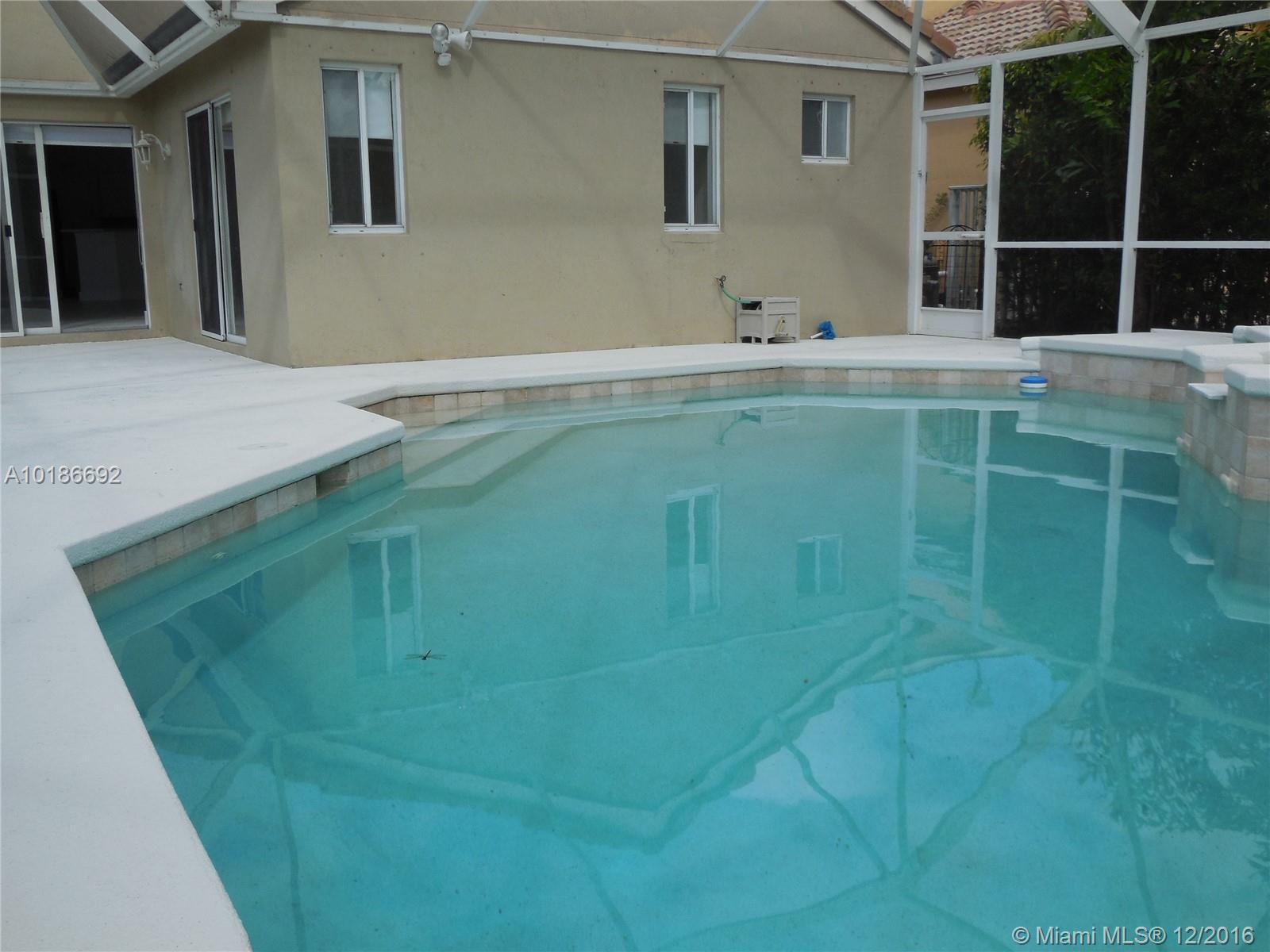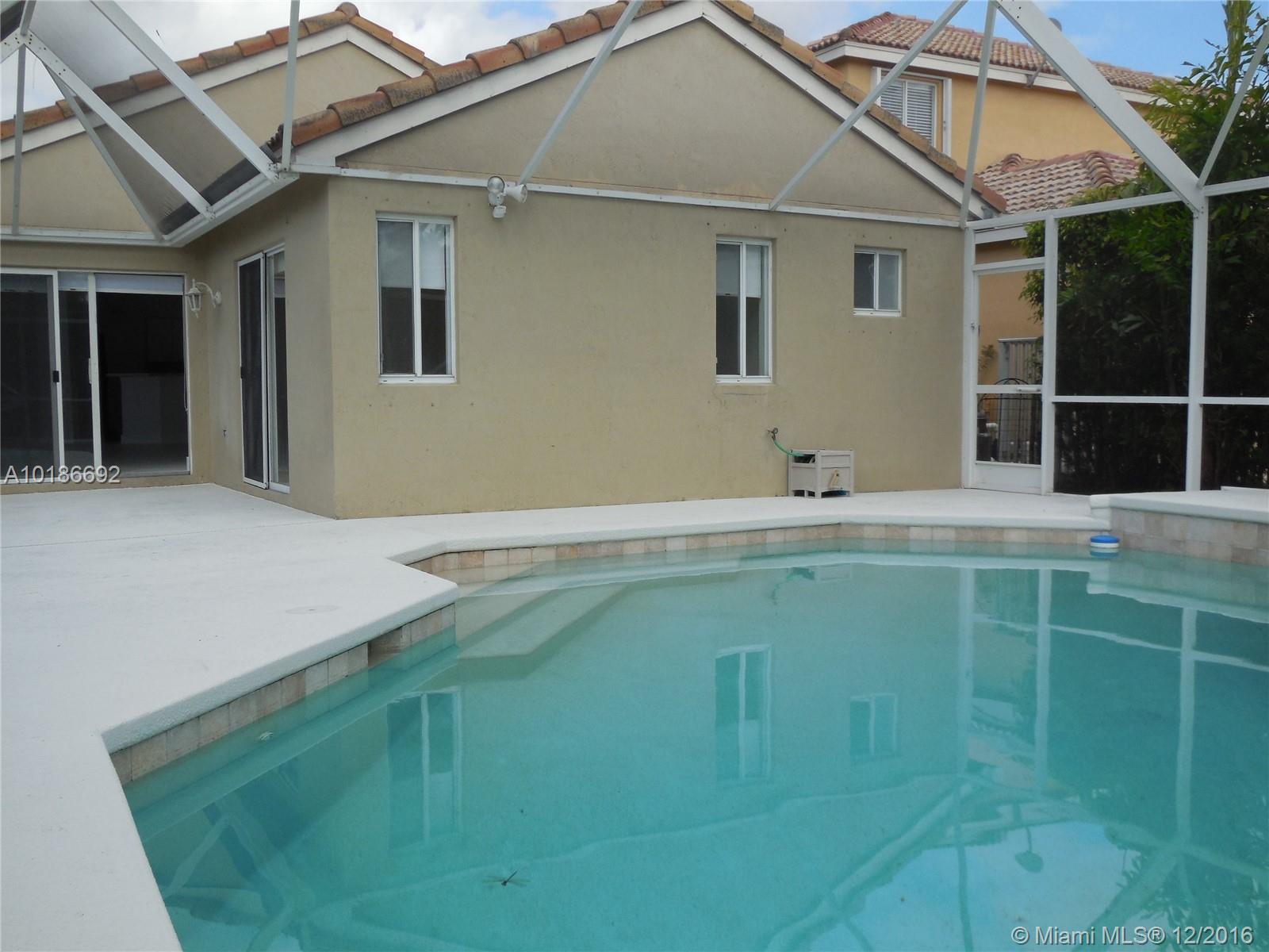 Beautiful home in a corner lot, 3 bedrooms and 2 bathrooms new tile floor in all rooms and bathrooms , New granite counter top , great heated pool and spa in an oversize lot, freshly painted , like new home in one of the best community in Weston , walking distance to the club house