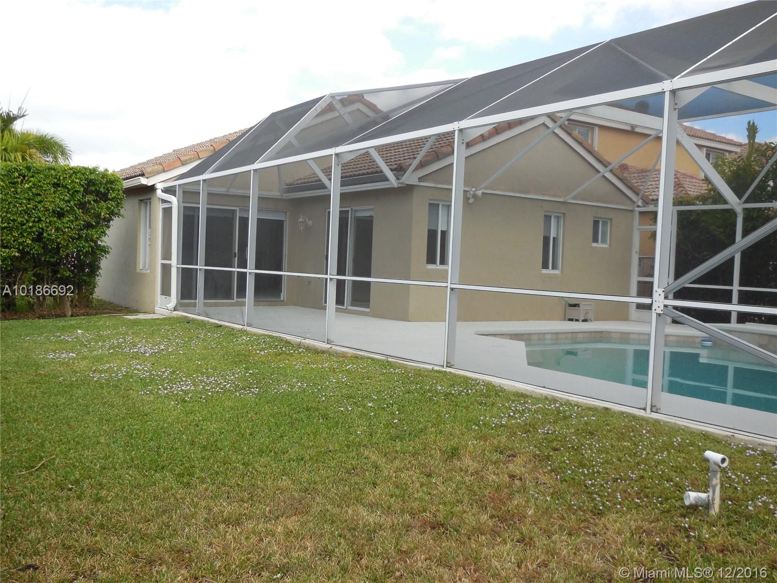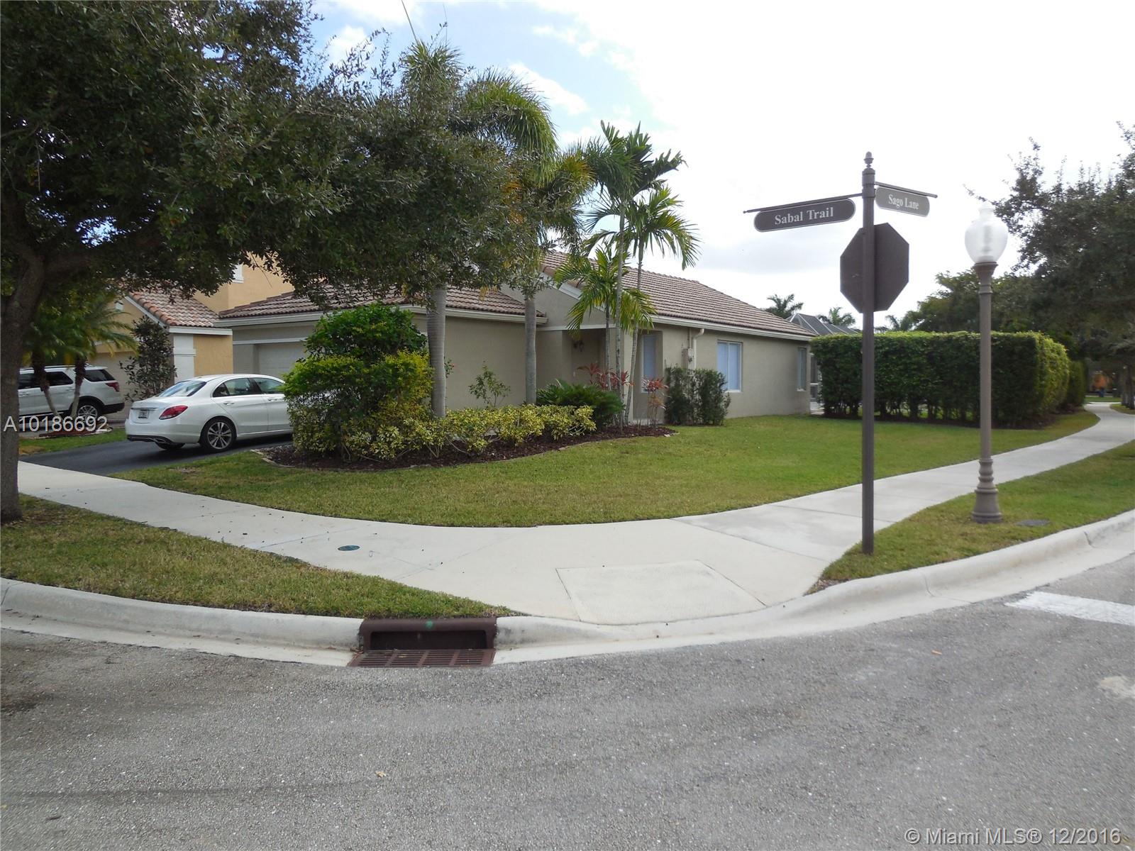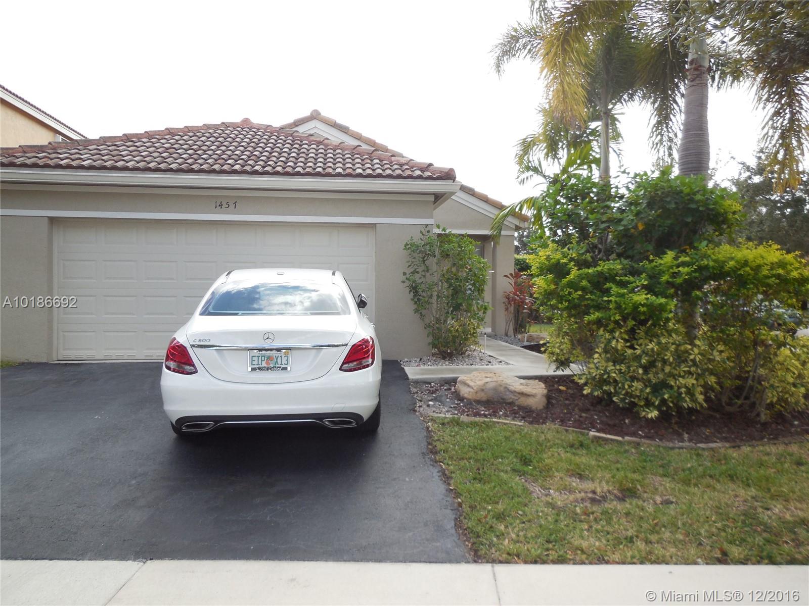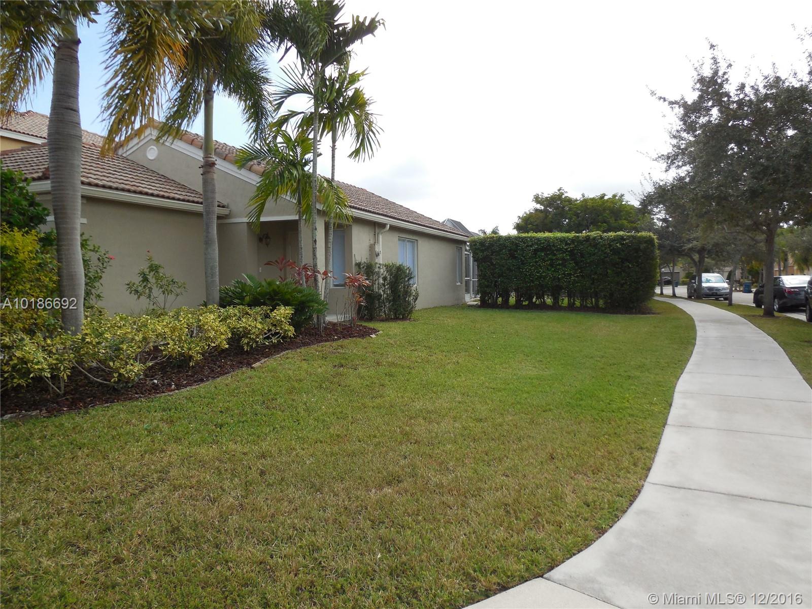 Beautiful home in a corner lot, 3 bedrooms and 2 bathrooms new tile floor in all rooms and bathrooms , New granite counter top , great heated pool and spa in an oversize lot, freshly painted , like new home in one of the best community in Weston , walking distance to the club house
