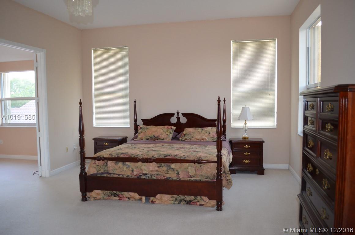 Accordion shutters 2nd level, mint condition home w/room for pool. (drawing available). Upgraded kitchen w/SS appliances, Corian countertops, numerous cabinets, large pantry plus Plantation shutters in FR & Kit. Separate eating area w/sliding doors to balcony. 1 bedrm main level w/full bath. Formal LR & DR. Carpeted 2nd level, 3 bedrms, Huge master, walk-in closets, balcony, adjoining nursery. Oversized bath, dbl vanities. Clubhouse w/pool, amenities, 24hr guard gate. Mint condition home!