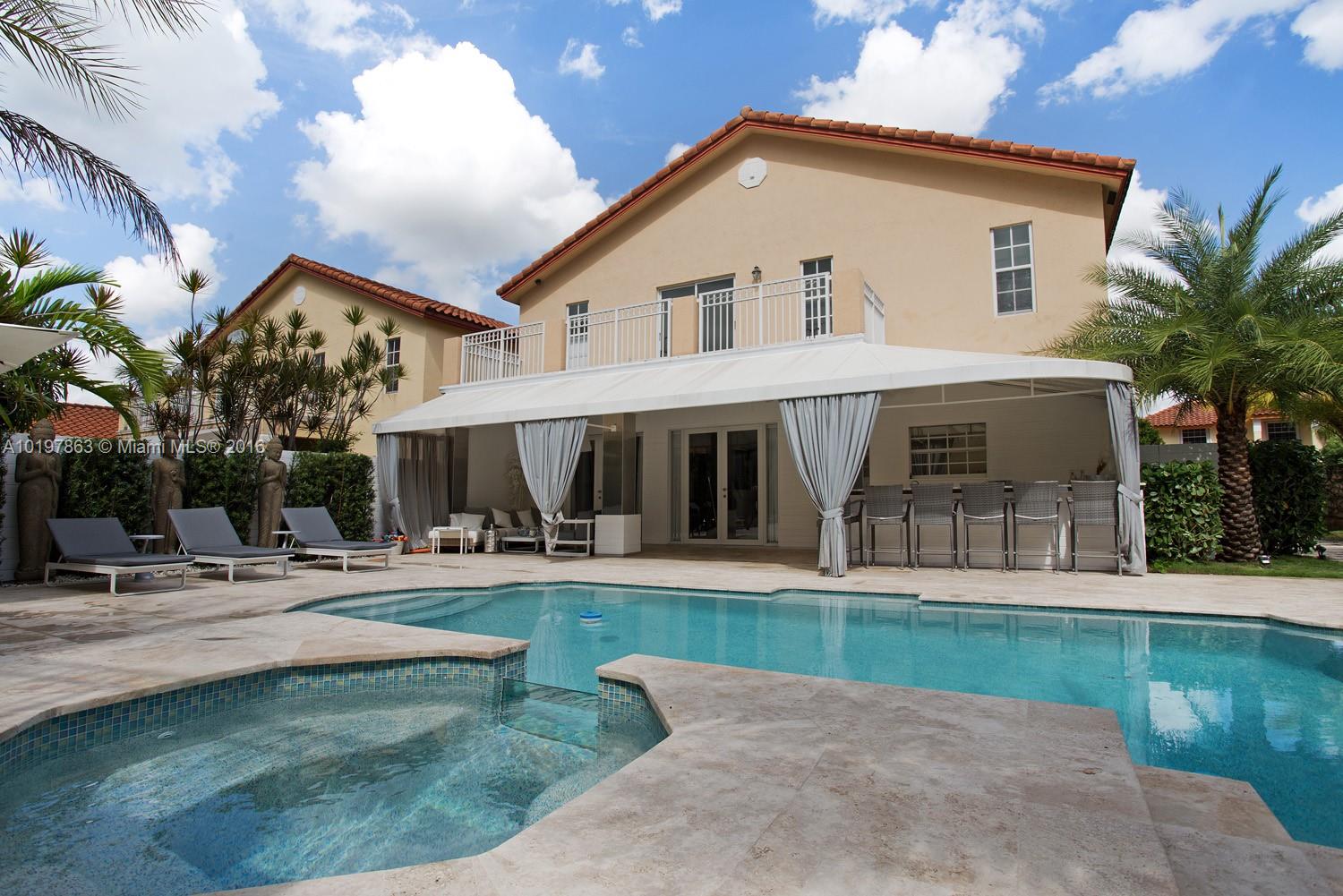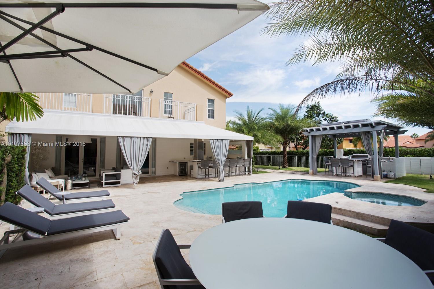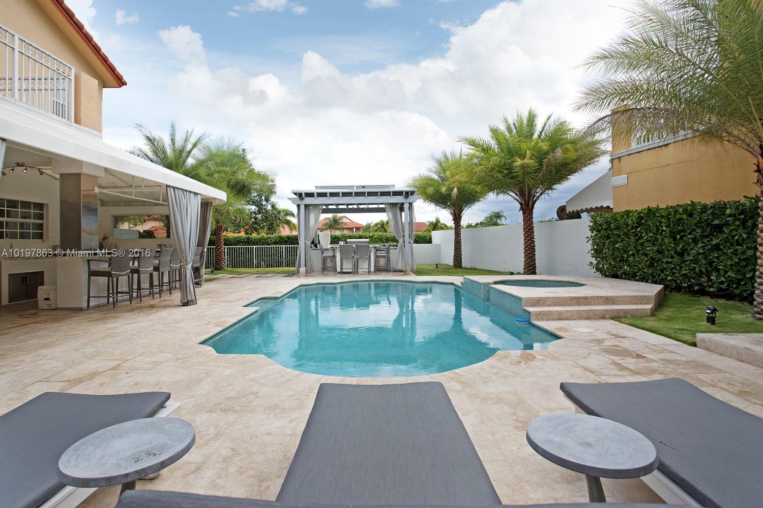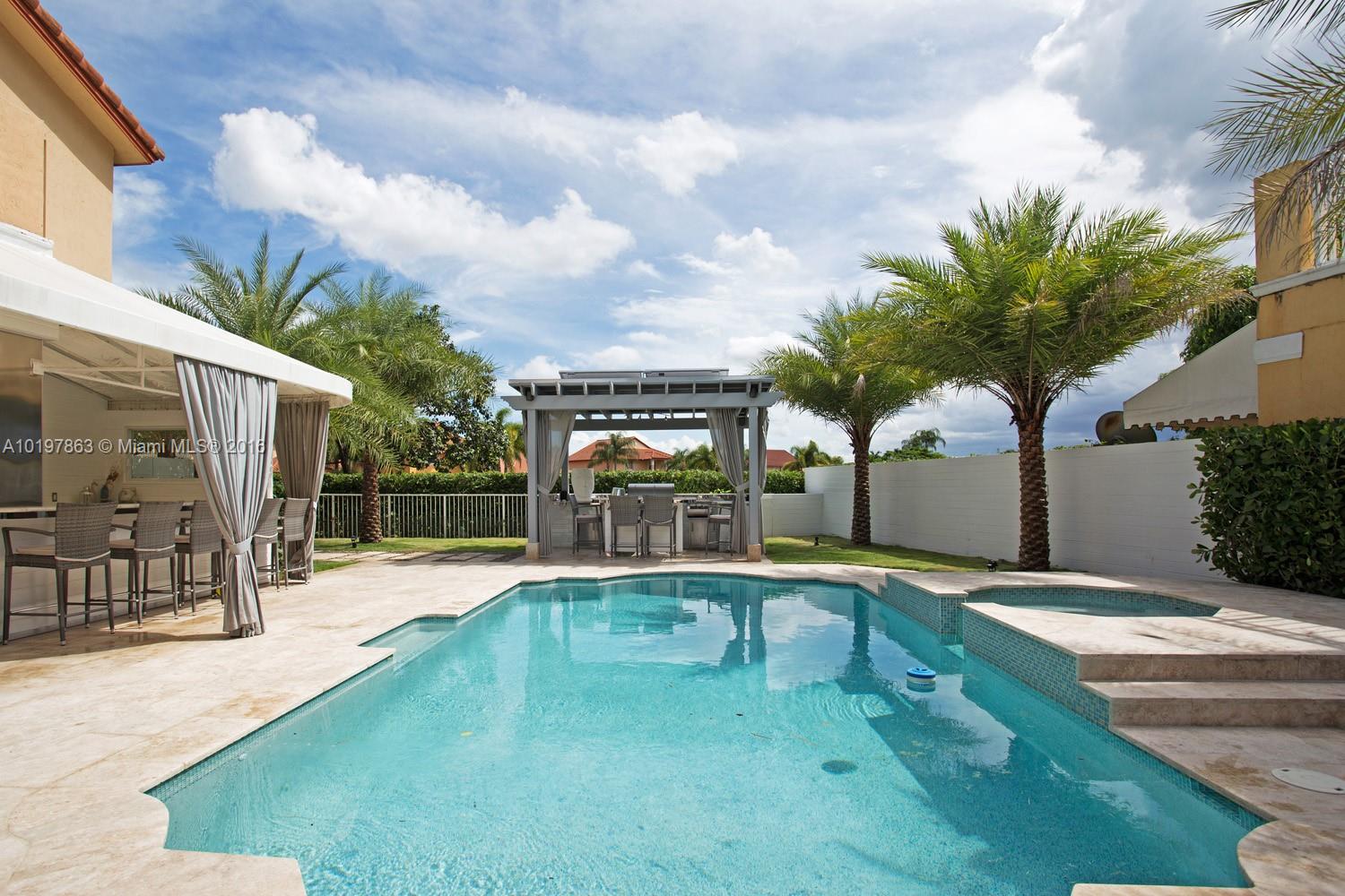 Beautiful newly renovated lake front home in Doral Dunes. The interior features 4 bedrooms, 2 1/2 updated baths, beautiful kitchen with quartz counters & white cabinets. 48” white floors, movie theater, property remodeled with extreme attention to details. The exterior offers travertine floors, pool w/ salt system, illuminated with color-changing lights, Jacuzzi, custom pergola, solar system panels and much more! Furniture Included!!!