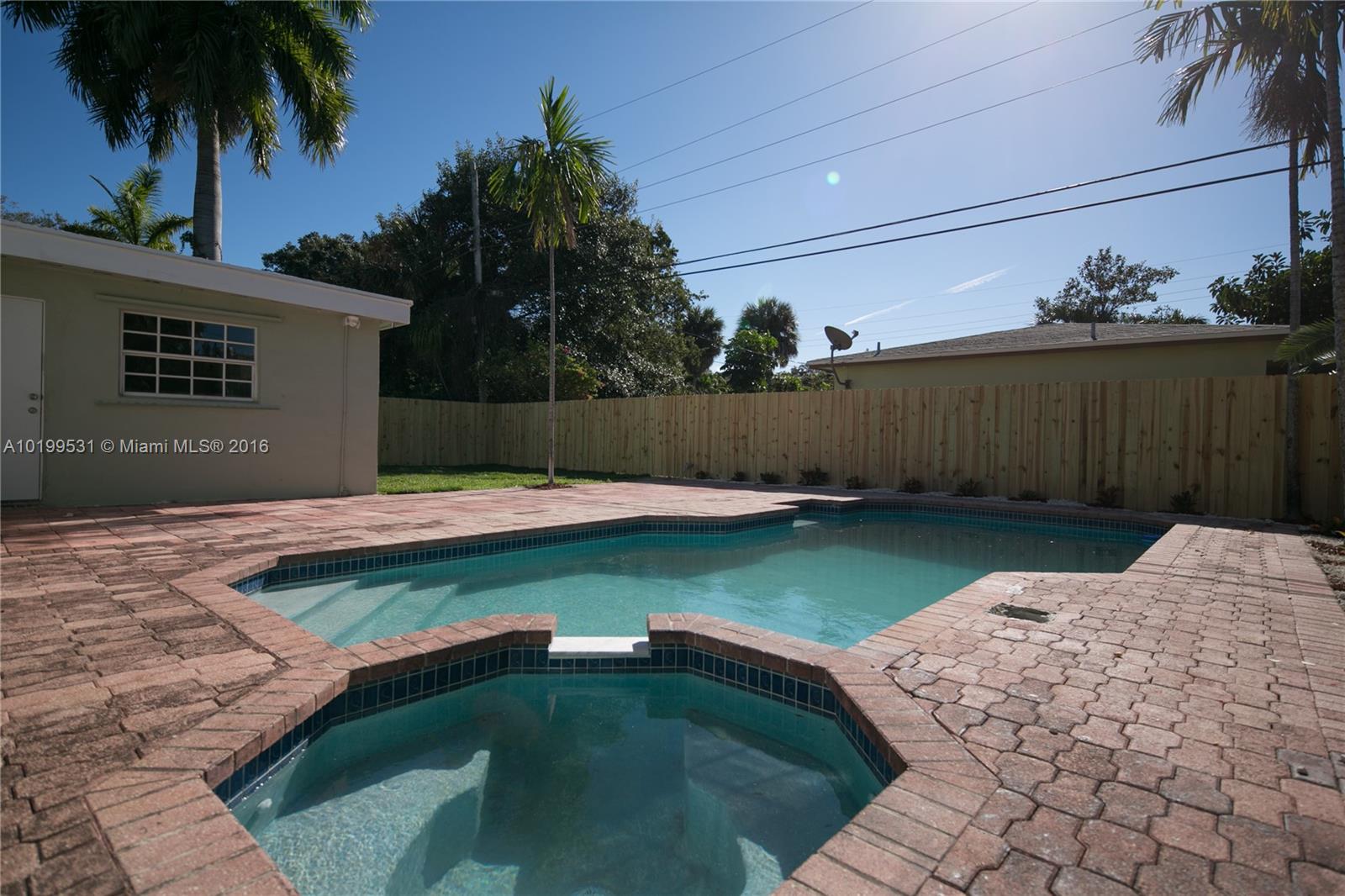 Beautiful and fully remodeled 4bed/2bath home in a quiet area of Fort Lauderdale. Close to I95, I595, State Road 84, the beach, and minutes from Fort Lauderdale airport. New appliances, new kitchen, new fence and pool / Jacuzzi deck area, new wood floors in bedrooms. Large laundry room. A big plus is the huge carport, perfect for your RV or boat. Yard is ideal for entertaining or for your kids to enjoy. Very nice neighborhood. Easy to show, lockbox.