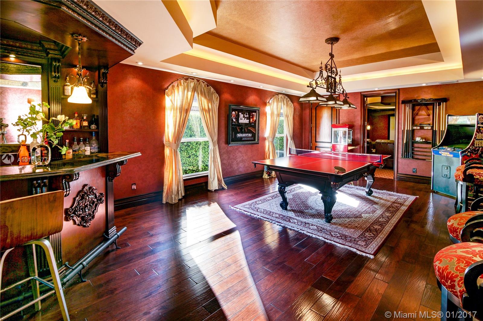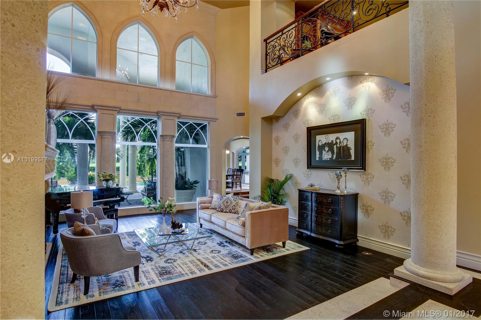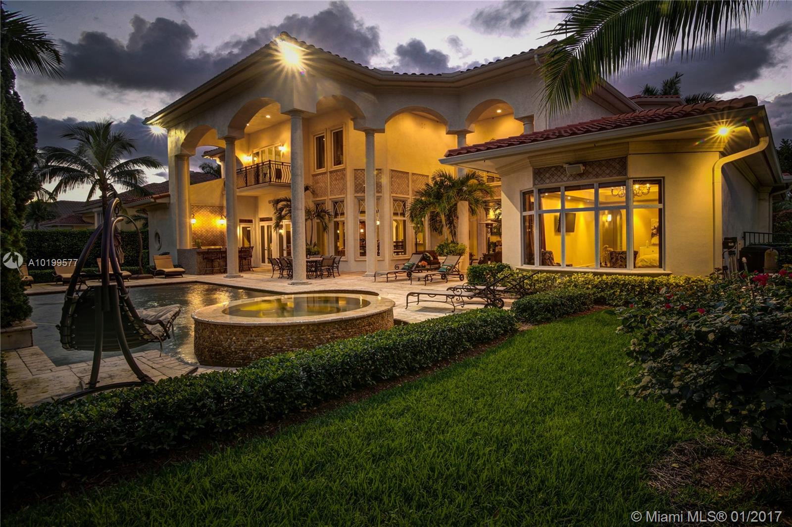 Spectacular one-of-a-kind custom built estate situated on a premier cul-de-sac lot with panoramic GOLF VIEWS! Boasting 9,341 square feet of luxurious living area, featuring 6 bedrooms, 7.5 baths, plus den/office, media room, billiard room, and upstairs loft. Beautifully appointed with designer finishes throughout, gourmet kitchen with gas stove & double sub-zero refrigerators, Master bedroom plus one Guest room on the main level, resort style pool and patio, impact windows and doors and much more!