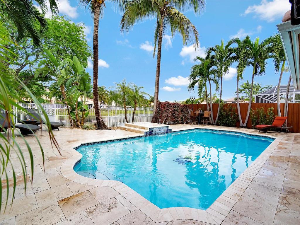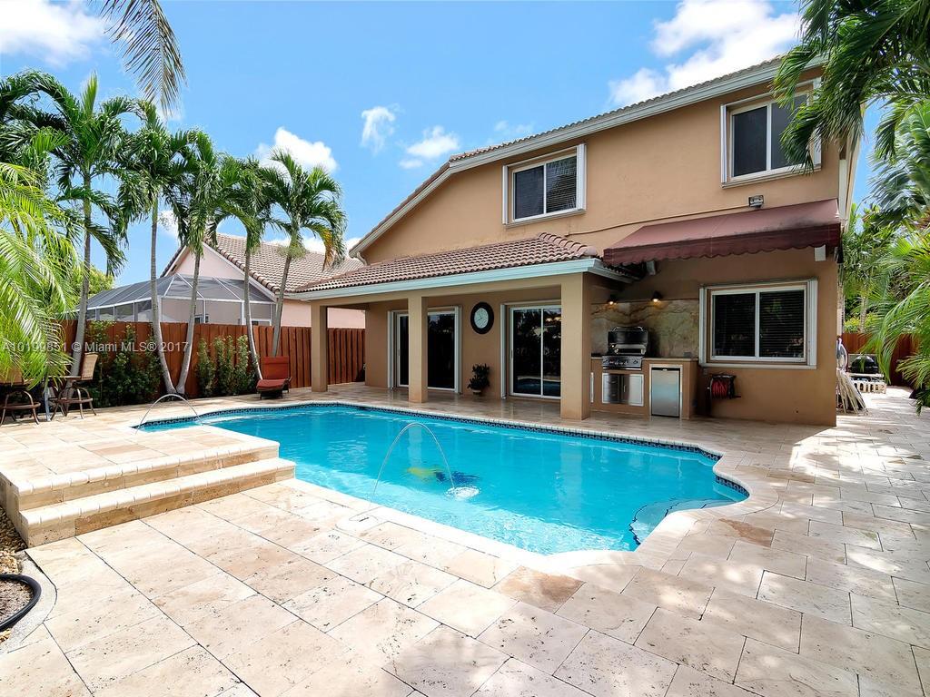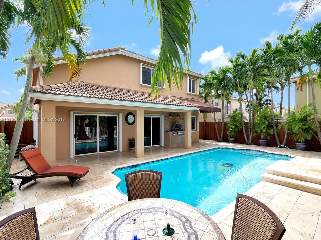 OUTDOOR OASIS! BEAUTIFUL LAKEFRONT POOL HOME IN EXCLUSIVE GATED COMMUNITY DORAL GARDENS. LOCATED IN A PRIVATE CUL DE SAC. COMPLETELY UPGRADED WITH NEW KITCHEN, BATHROOMS AND MUCH MORE! PROPERTY FEATURES 4 BEDROOMS (ONE DOWNSTAIRS) 3 BATHROOMS, NEW WATER HEATER NEW HIGH EFFICIENCY A/C, NEW WASHER AND DRYER, LED LIGHTING THROUGH THE HOME, SALT WATER POOL SYSTEM, COLOR LAMINAR WATER JETS AND TRAVERTINE PAVERS, GRANITE OUTDOOR BBQ.
