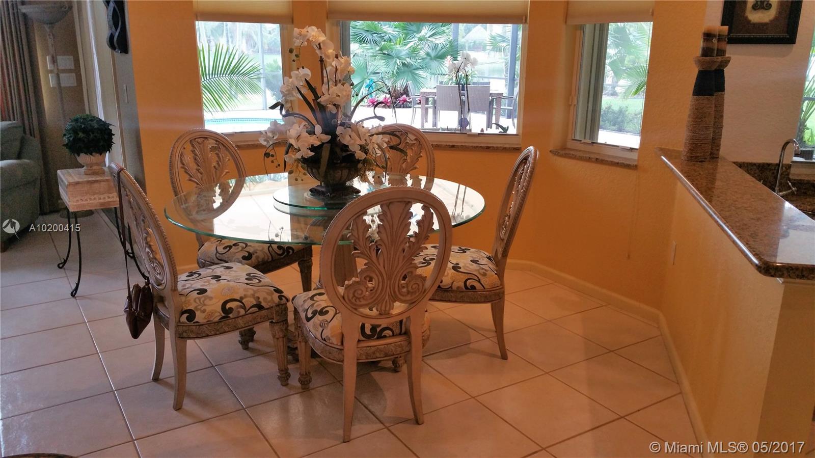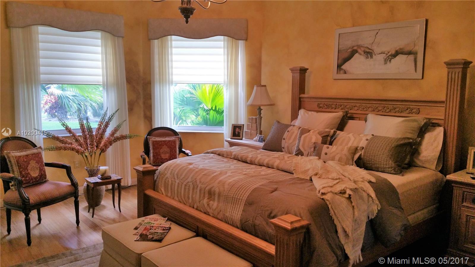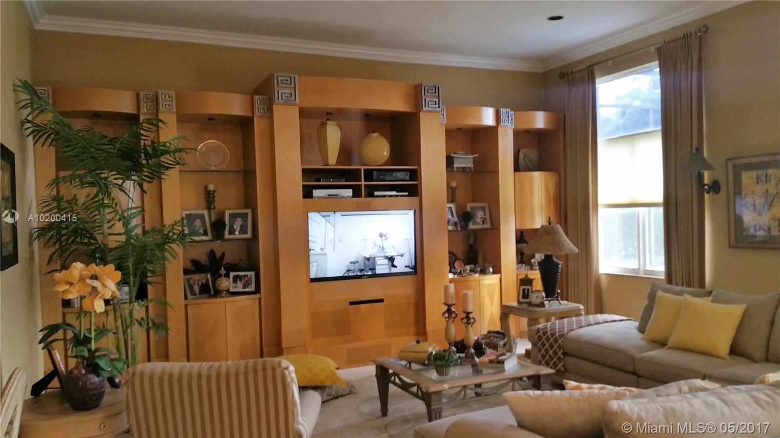 Stunning spacious corner Lake home features 1 story 5 Bdrm 4 Bath , 3 car garage, with open terrace screen in pool with water fall over looking serene lake. This amazing home is equip with top of the line appliances, huge entertainment room with wall to wall unit with TV and surround sound and DVD and CD storage included. Gourmet Kitchen W/ Granite counter top, breakfast nook & wet bar.Crown molding,accordion shutters. One of a kind Bright and clean spacious home. a must see