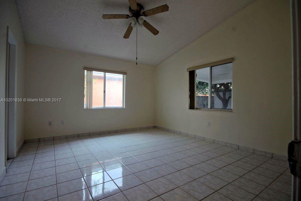 This beautiful house in a quiet neighborhood, centrally located just a mile west of the Palmetto Expressway! 3 beds, 2 baths, master suite w/walking closet, spacious living, dining & family rooms, ceramic tile thru-out, new A/C, Washer/Dryer, stainless steel appliances, all windows & doors are hurricane-proof or have accordion shutters, open floor plan w/high ceilings, enclosed huge backyard terrace, driveway w/ pavers & room for several cars. Semi private community is surrounded by canals! SHOW & SELL!