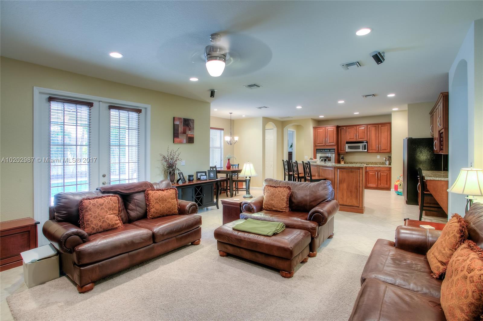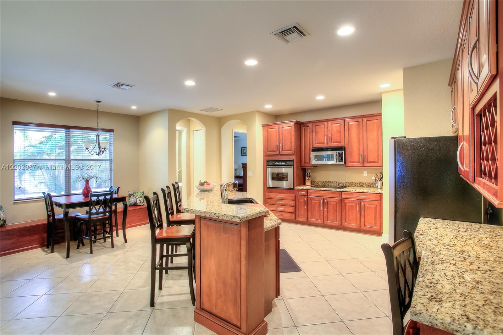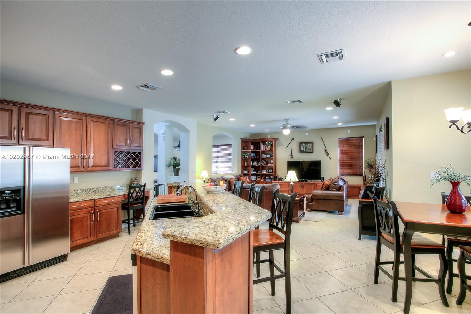 WOW! WHAT AN AWESOME OPPORTUNITY TO MOVE RIGHT IN A 5 BED/3BATH/POOL/3 CAR GARAGE IMMACULATE EXECUTIVE HOME IN ONE OF THE MOST DESIRABLE NEIGHBORHOODS OF WESTON. THE ISLES OF WESTON HAS 24/7 SECURITY AND CLUB HOUSE. TWO STORY JUNIPER MODEL, BEAUTIFUL OPEN GOURMET KITCHEN WITH GRANITE COUNTERS, WOOD KITCHEN CABINETS, STAINLESS STEEL APPLIANCES, OVERLOOKING FAMILY ROOM AND POOL. MASTER DOWN STAIRS. CUSTOM DESIGNED POOL WITH EXTENDED COVER PATIO ON A LARGE MANICURED FENCED LOT. A+ SCHOOLS, ACCORDION SHUTTERS