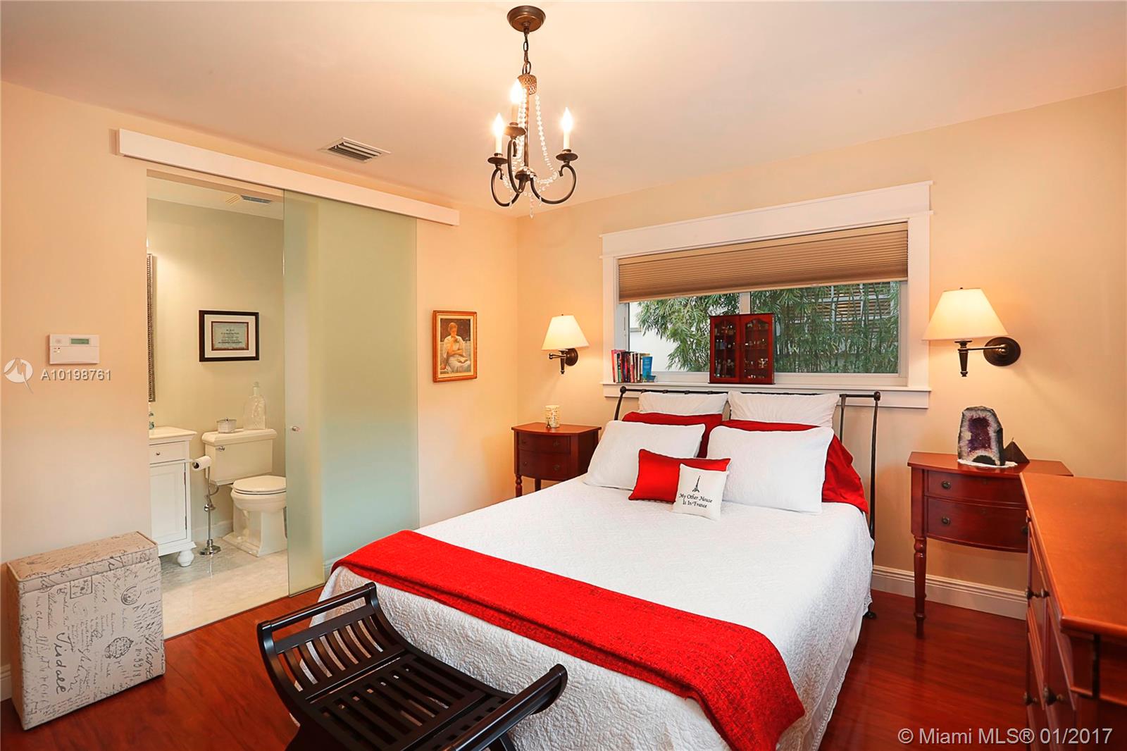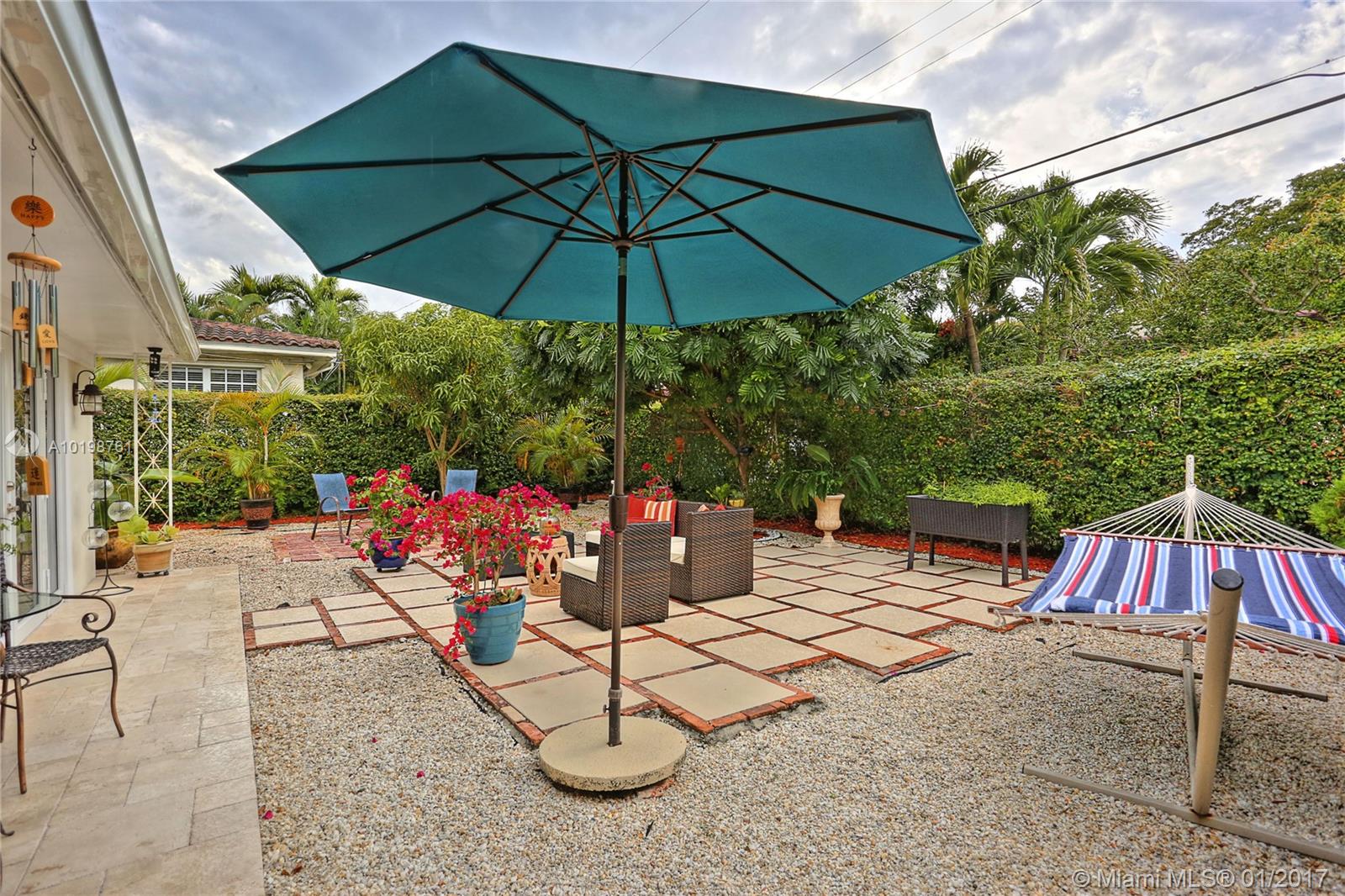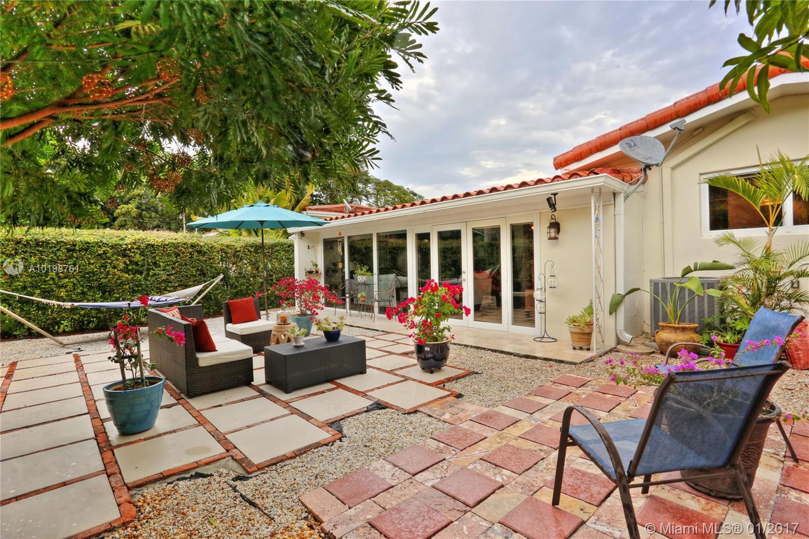 Gorgeous 2 bed, 2 full bath house located in North Coral Gables has been completely remodeled w/ the most exquisite touches. The kitchen comes equipped w/ stainless steel appliances. Elegant wood floor flows throughout the main living areas & bedrooms. The stone patio creates an elegant addition & requires very low maintenance since it is designed w/ fewer grassy areas to care for. Some other great features of this home are the hurricane impact windows, alarm, security camera & a 1 car garage.