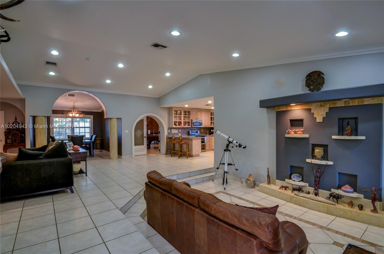 Exquisite custom home in the heart of Doral! Features open light, bright floor plan,volume ceiling entertainment area wired for home theatre.Formal living, dining rooms.Spectacular master suite.Etched glass doors/mirrors .Room for pool/patio entertainment.Home sits on corner lot great proximity to Golf,Trump Natl. Doral, Downtown Doral, shopping malls and Fla. Tpk. Exclusive area of Doral does not require assn. membership or fees. $2000.00 BONUS TO BUYERS AGENT. Priced to sell. Approved buyers only