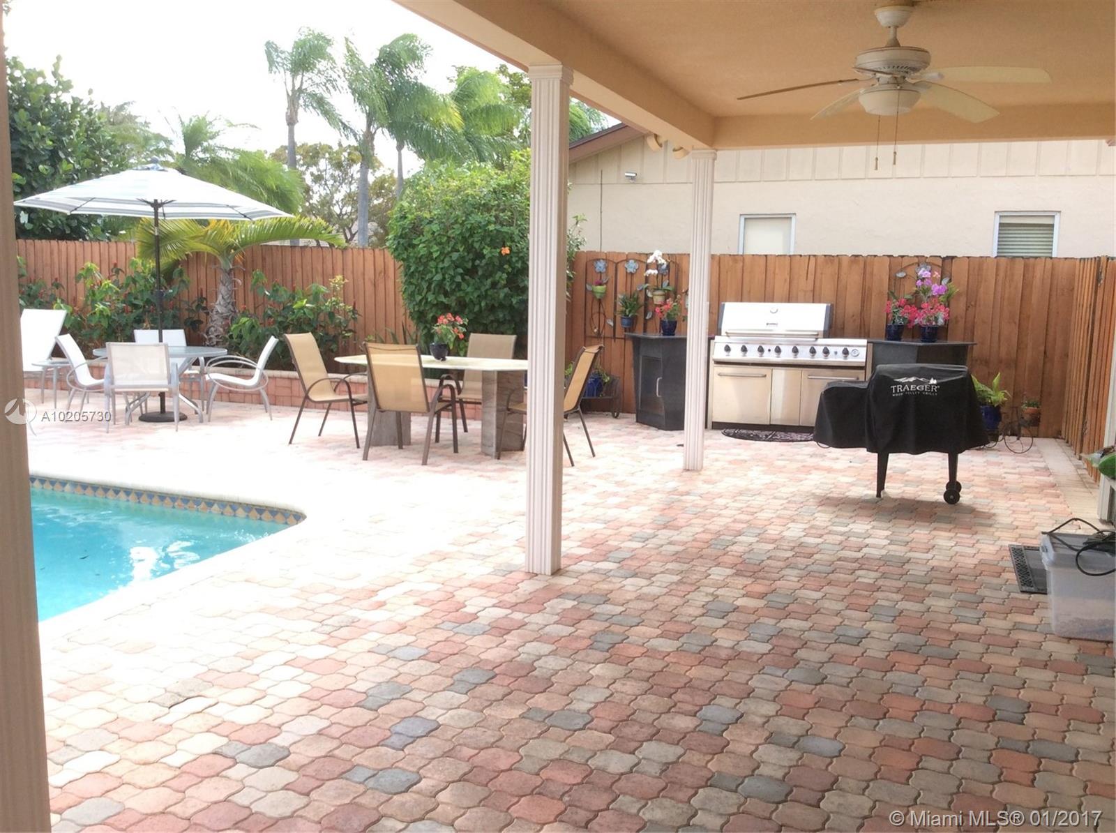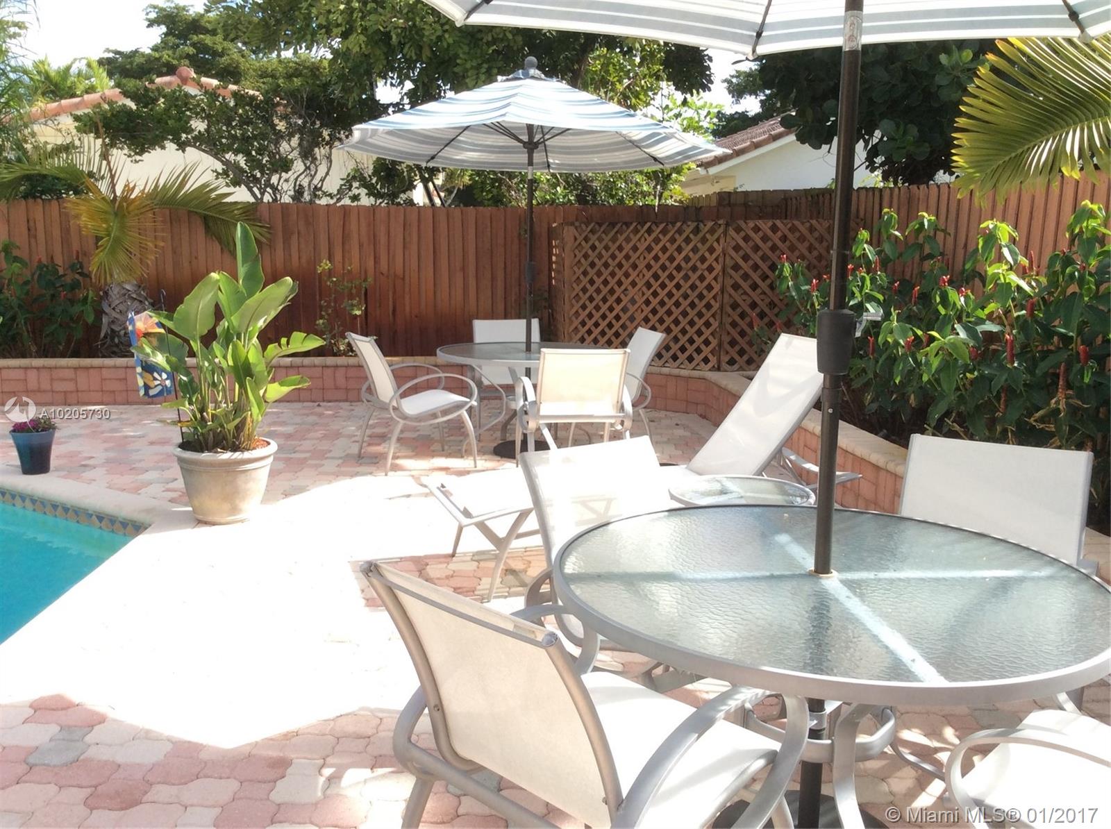 Modern 4bd 3bth pool home on a great street in 24 hour gated community. Formal dining room, extra room that can be a fifth bedroom, nanny's room or great play room. Lovely new kitchen, remodeled with granite & wood & stainless steel appliances; large great room. Beautiful patio & pool area. Fenced yard, shed. Hurricane shutters. Walk to "A" schools, Houses of Worship. Minutes to airports, Aventura Mall, Gulfstream, FIU & easy access to I-95.