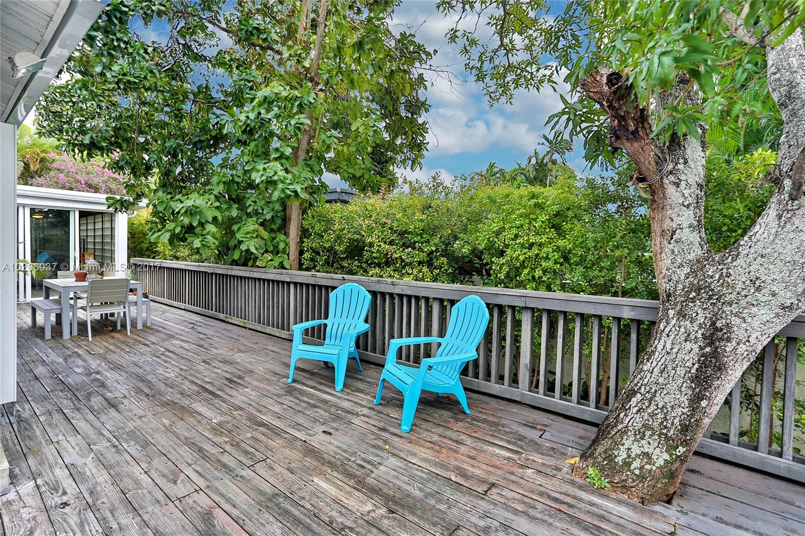 Walk to the beach from this lovely Surfside home with 3 bedrooms, 2 bathrooms & garage. Bright and spacious living & dining areas flow into the open, renovated kitchen with stainless steel appliances & wood cabinetry. Unique exposed beam ceilings, tile & wood flooring throughout. Private, fenced backyard with a wood deck perfect for entertaining or relaxing. Only 2 blocks to the ocean & community center/pool. Walk to Bal Harbour Shops, Four Seasons, shopping & dining. Zoned for A+ Bay Harbor schools.