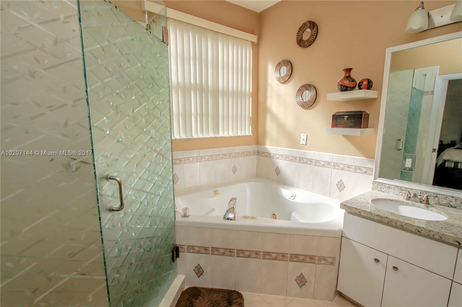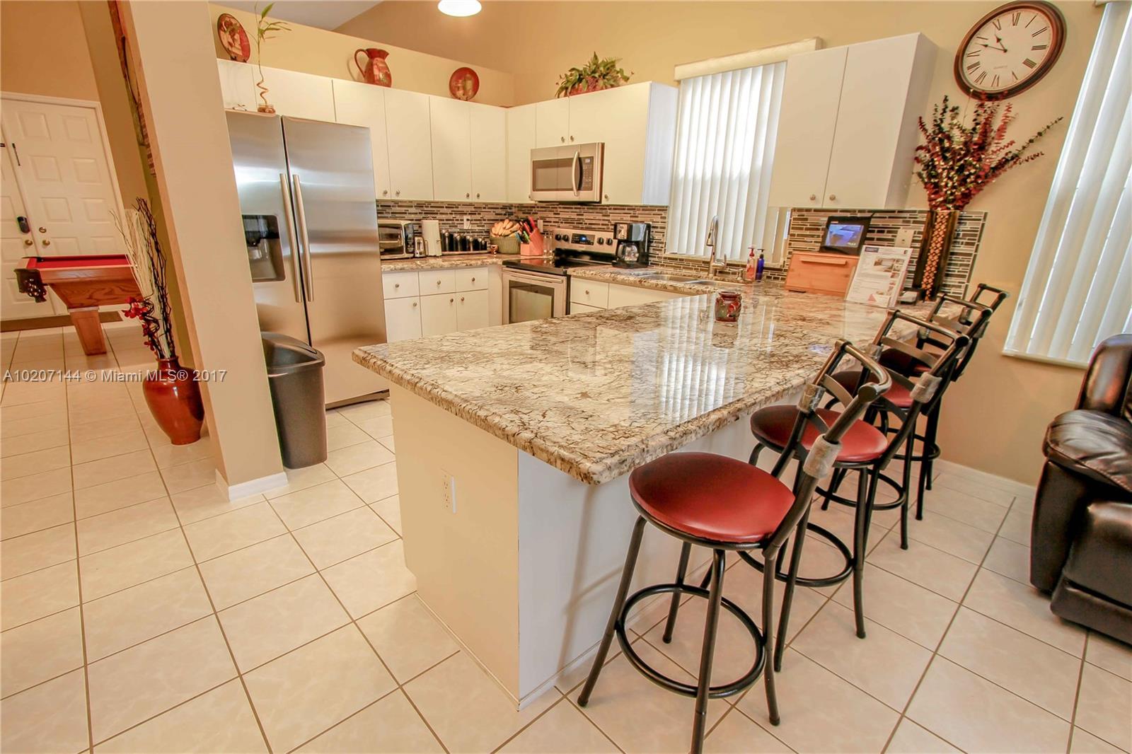 Beautifully maintained 3BD/2BA home with hight ceilings. Updated kitchen and baths with granite counter tops and stainless steel appliances. Very spacious rooms, with a big backyard and patio area. Salt-water system pool, frameless shower doors in MB, and cameras/security system. Located in a quiet culdesac in a sought after gated community. Side yard has room to store a small boat. Community has a pool, and club house and is located next to Viscaya Park. Next to Somerset Charter. This home is a must see!