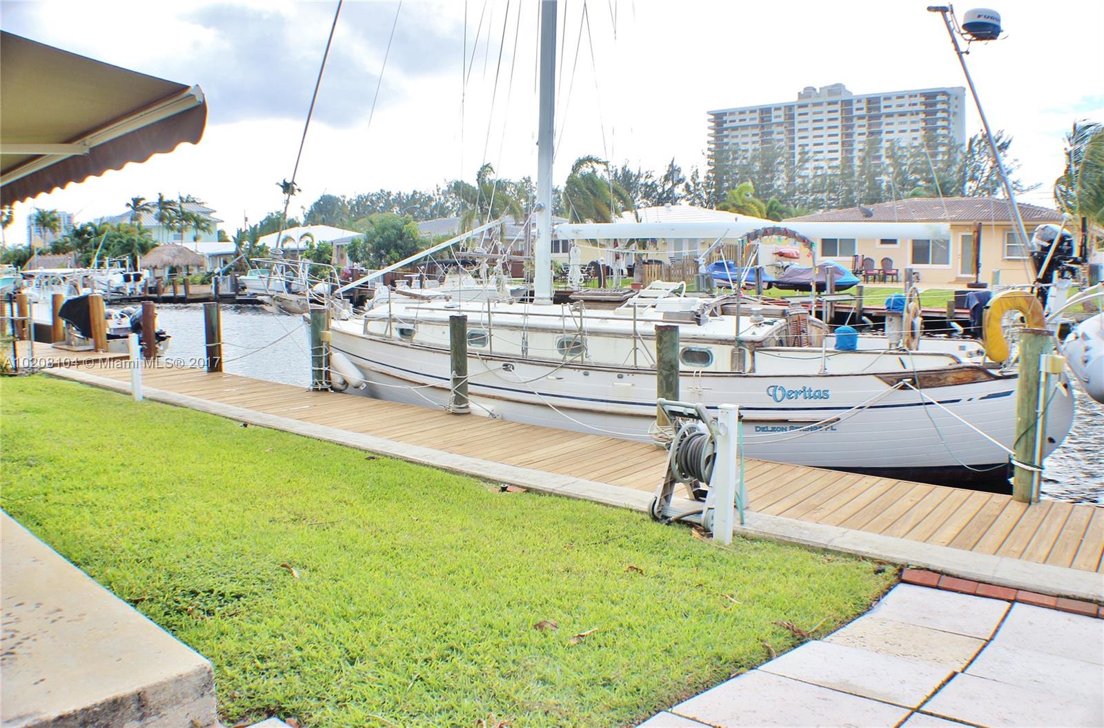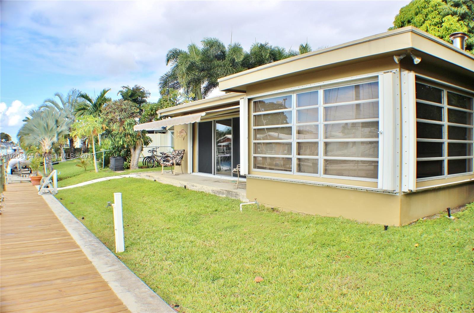 Beautiful Waterfront Home featuring a Deep Water Dock & No Fixed Bridges Ocean Access!This home also features an Open Layout with Tile & Terrazzo floors throughout. Kitchen is open to Dining and Living Room with a view of the water/dock. Indoor Laundry/Utility Room. One of the rooms is being used as a home office space that can be easily converted. Very Spacious Living/Family room with a fire place.Accordion Shutters for windows/sliding doors.Circular Paved Driveway with lots of parking space