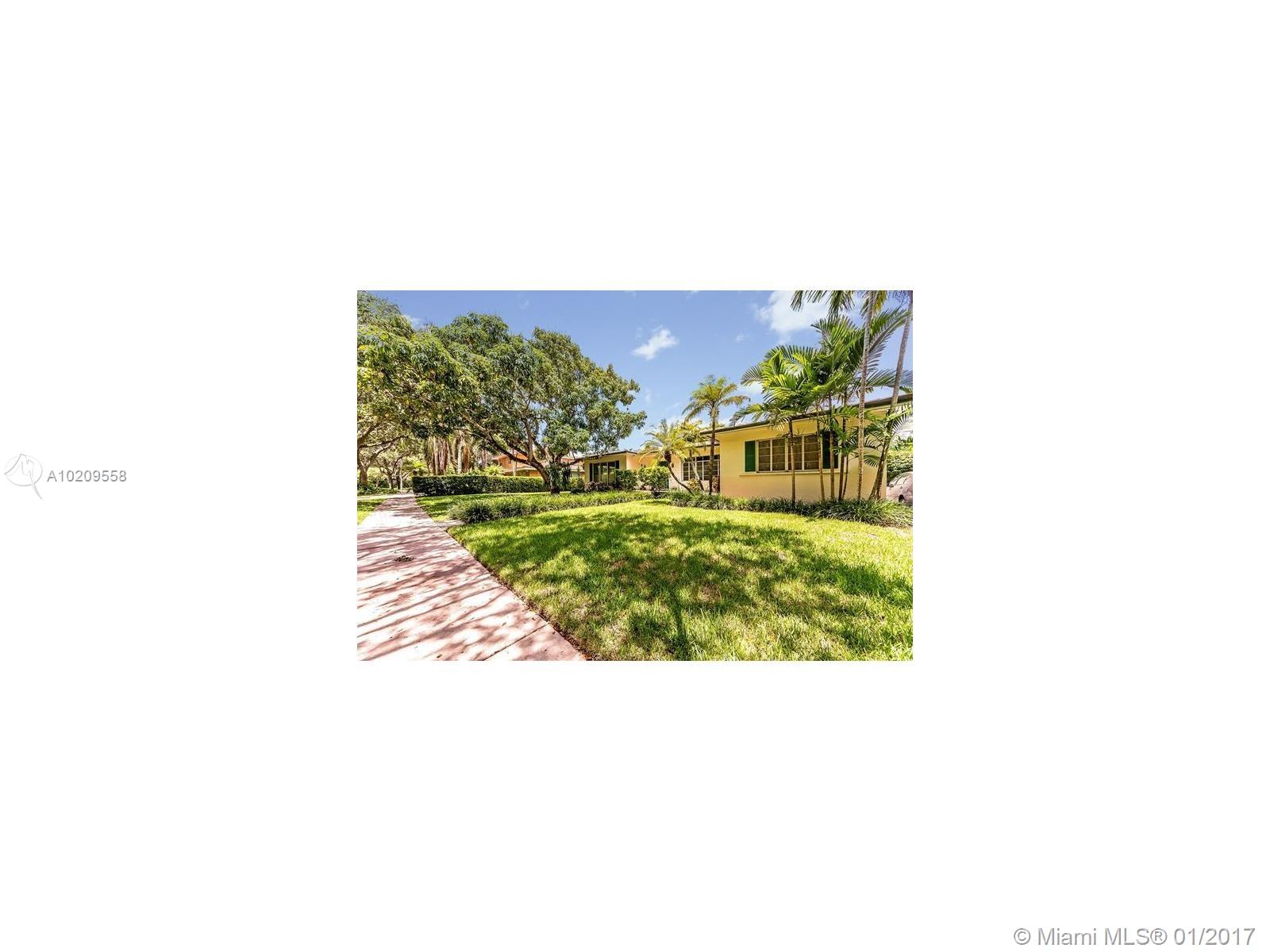 Excellent Opportunity Below Appraised Value! 4Bds, 3Ba + Office on a large 10,815sf Lot in South Gables quiet tree-lined street w/in excellent school district. Bright & open family floorplan. Move right in or renovate to endless possibilities. Florida room open to kitchen, oversized living room, beautiful wood floors, gas range, separate indoor laundry room, master bedroom overlooks private backyard, oversized windows, entry foyer, covered patio and lots of fruit trees! A true Coral Gables gem!
