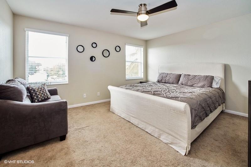 The homeowners spared no costs in this impeccable 4/2.5 home located in a cul de sac. Open concept floor plan makes for entertaining and an inclusive family area and kitchen with granite counter tops and stainless steel appliances. The den features a tiled wall that makes the room warm and inviting. Huge master suite with 2 walk-in closets. Tiled garage. Accordian shutters and high impact doors. Gated community with pool, tennis court, basketball court, clubhouse and gym. What more can you ask for! Security video recording on premise.