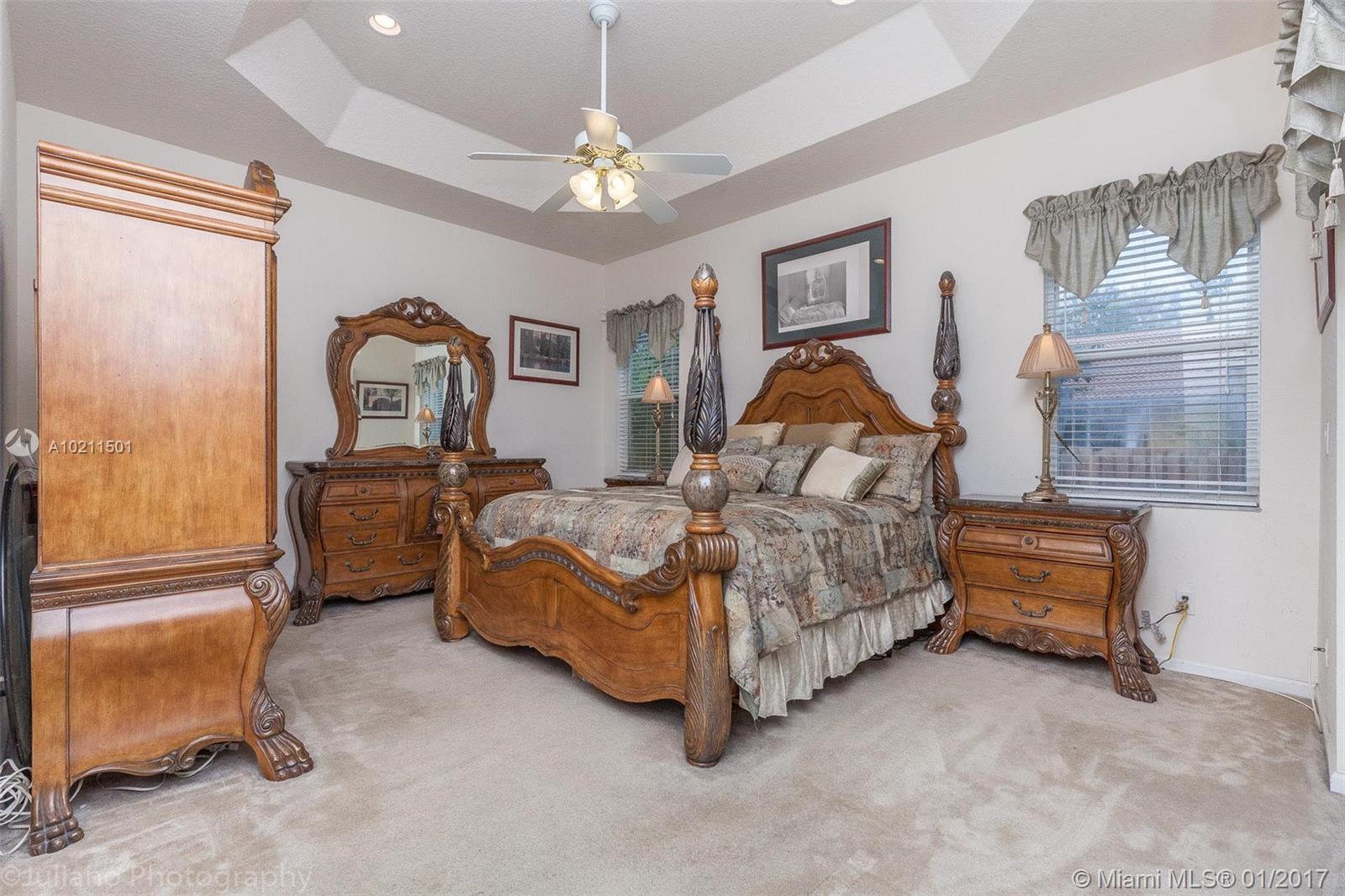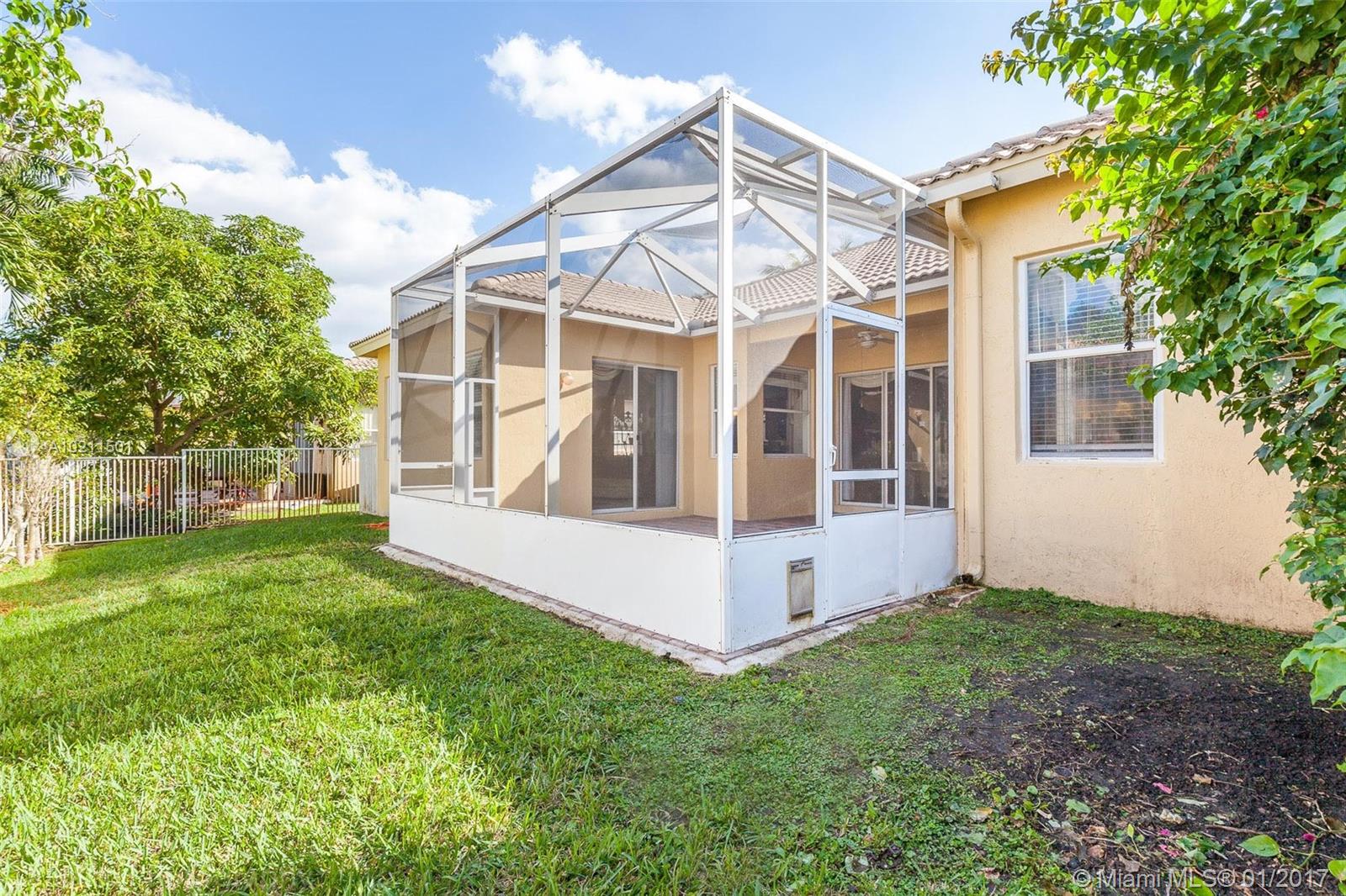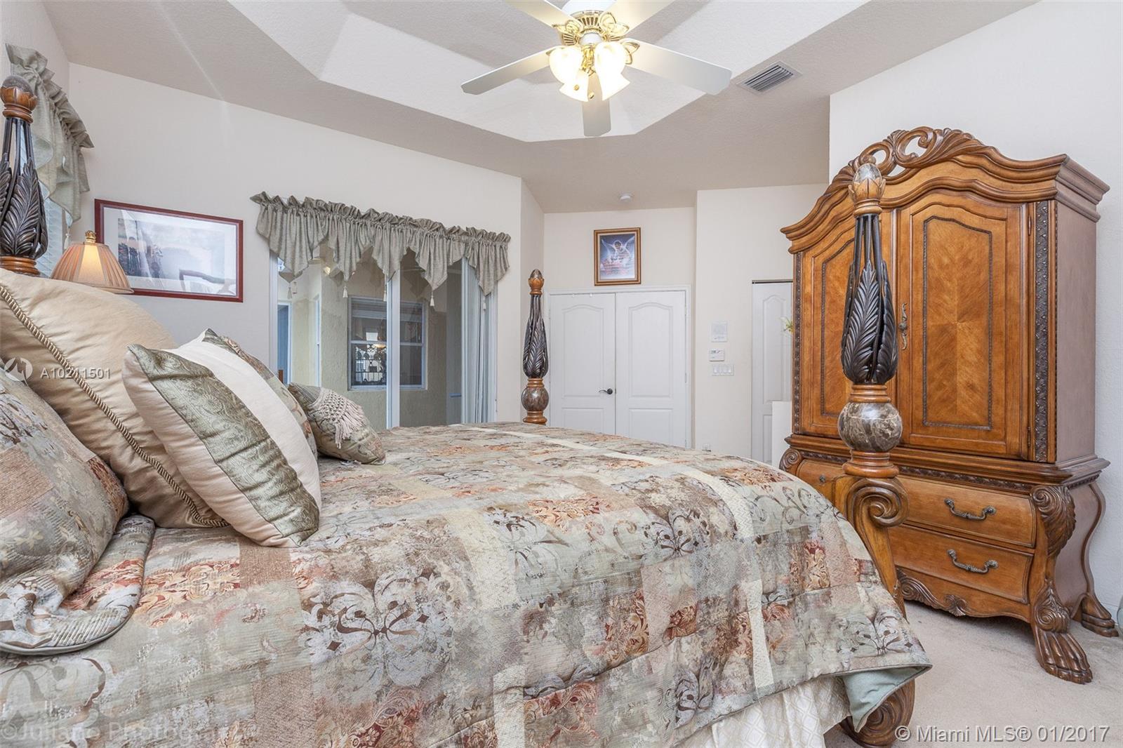 This Elegant Upgraded Home Offers Arched Double Door Foyer Entry Leading to the open Living Room with 15 foot high Ceilings, Neutral Diagonal Title Throughout, Gourmet Kitchen with Granite Counters top and New Stainless Steel Appliances with Warranty on them, The Master Suite has Tray Ceiling & Large Walk in closet , Master Bath with His & Hers Sinks/Vanities, Roman Tub & Separate Shower Also comes with Hurricane Shutters, Enclosed Screened Patio , fence backyard , large Paver Driveway. *Gated Community*
