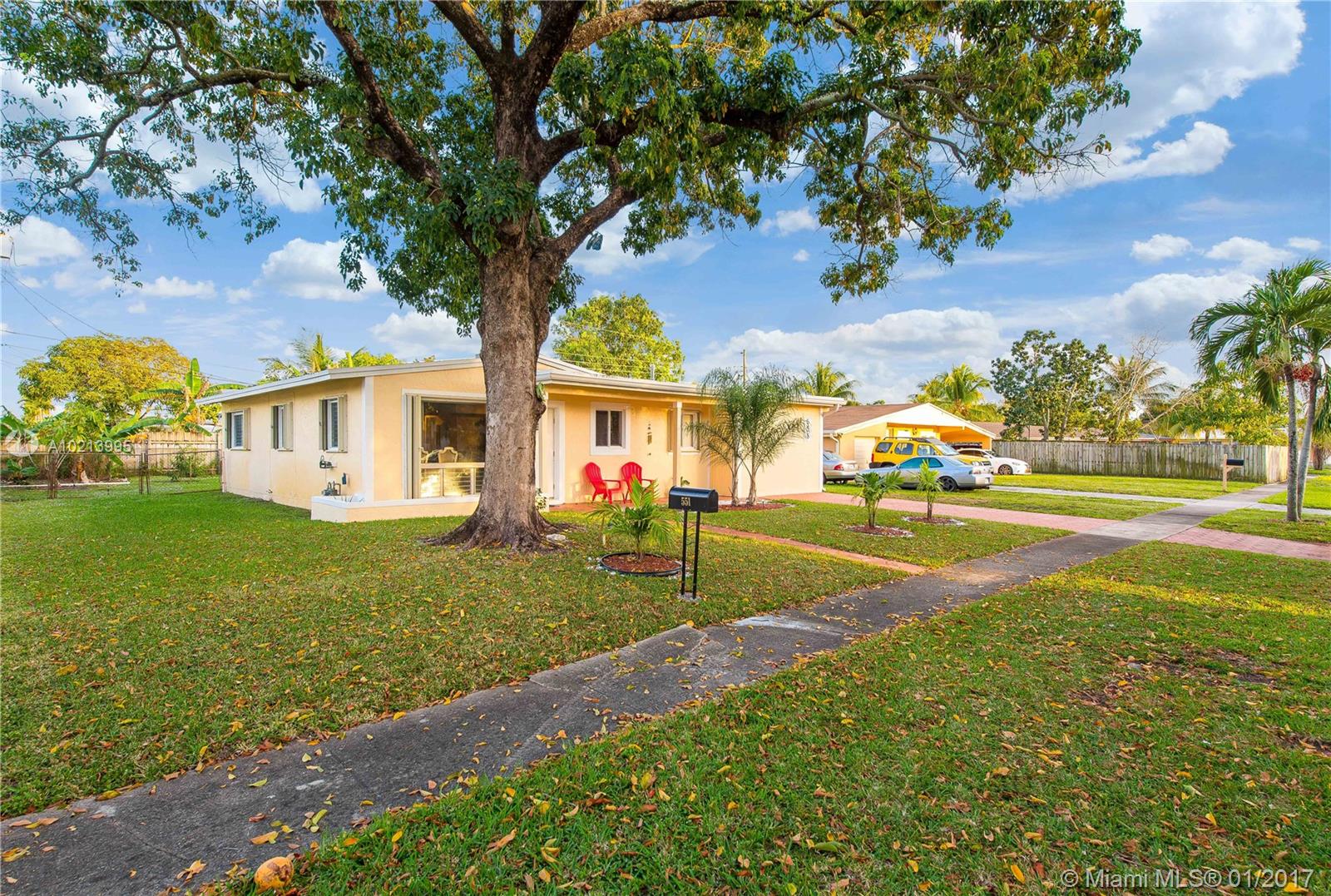 Lovely 1 story home with 3 Bedrooms 1/1 .5 Bathrooms, that can be easy converted to a 3/2. Very well maintain with 1 car garage and extra room for 2 more cars, Big Yard with room for a pool. Roof is 5 years old and AC 3yrs old. Nice open kitchen with natural light and a Gas Stove. Ceramic floors, New circuit Breakers, Sprinkle system. Separated Laundry. This house can also be a 2/1 with a separate 1 bedroom 1 bath for a nice income.