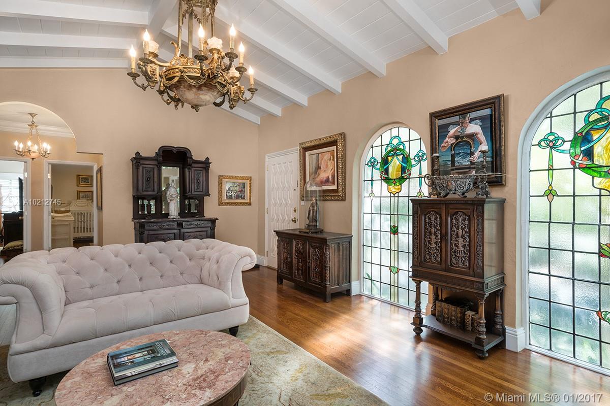 Charming home in the Golden Triangle area of prestigious Coral Gables with 3BR/3BA and a 9,300 sq ft lot with distinctly South Florida feel. Features include formal living & dining rooms, kitchen w/ double ovens, flat cooktop, plenty of storage, gorgeous marble/wood flooring, beautiful lighting and high-end finishes. Every detail has been thoughtfully placed to enhance the beauty of the home. The imported stained glass adds a custom tough that elevates the space. The home also has a 2 car garage.