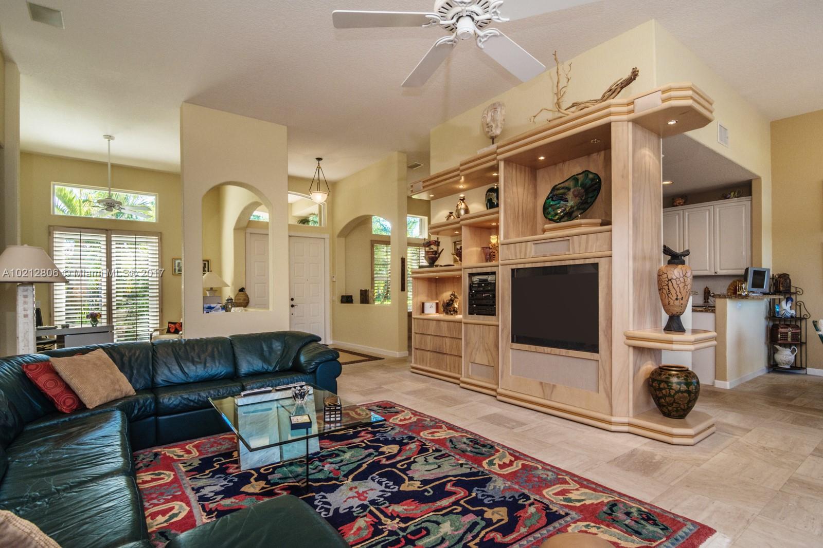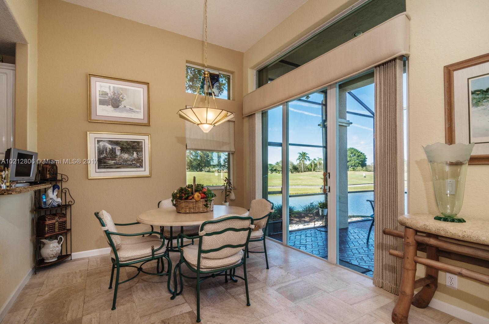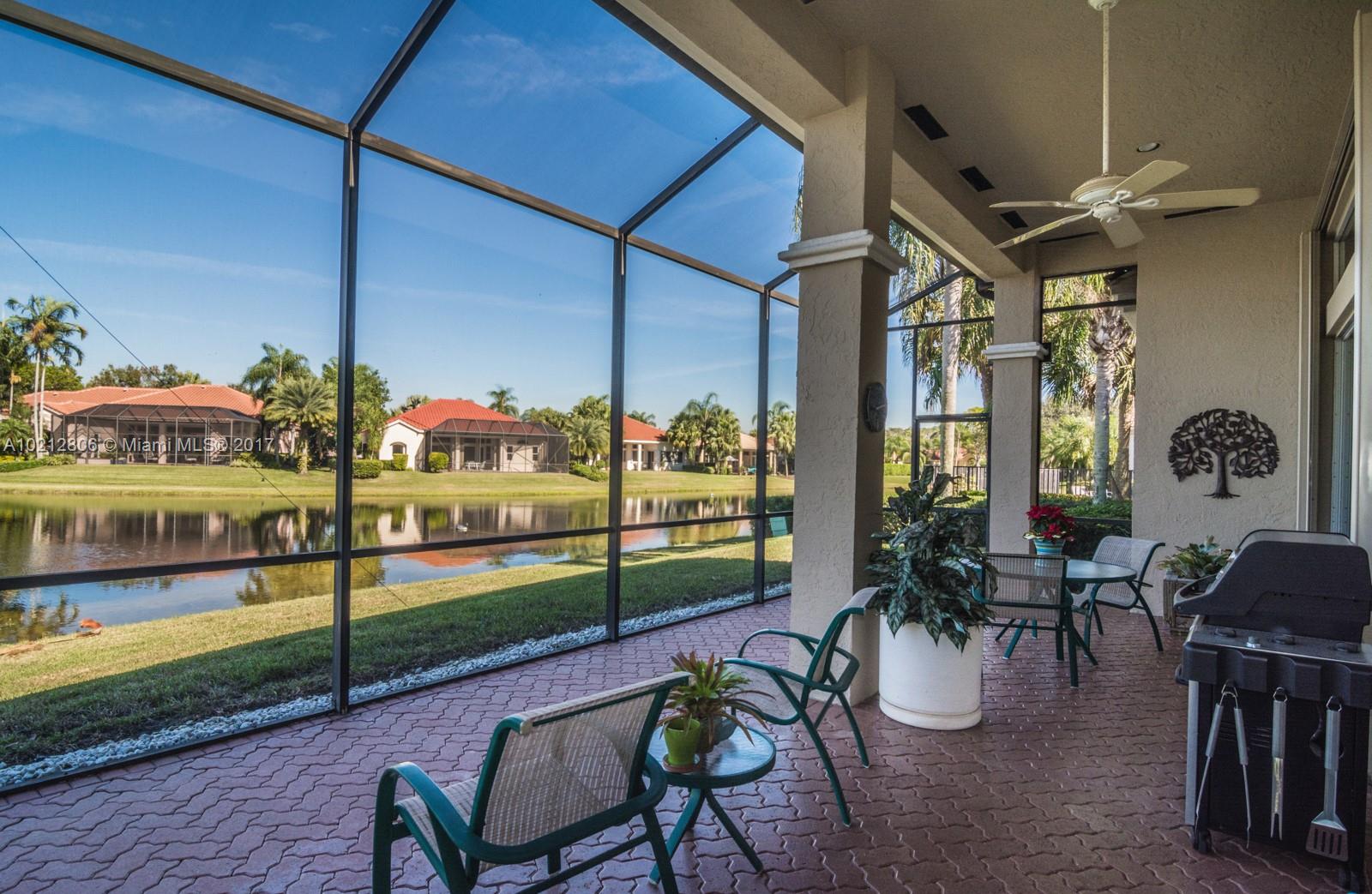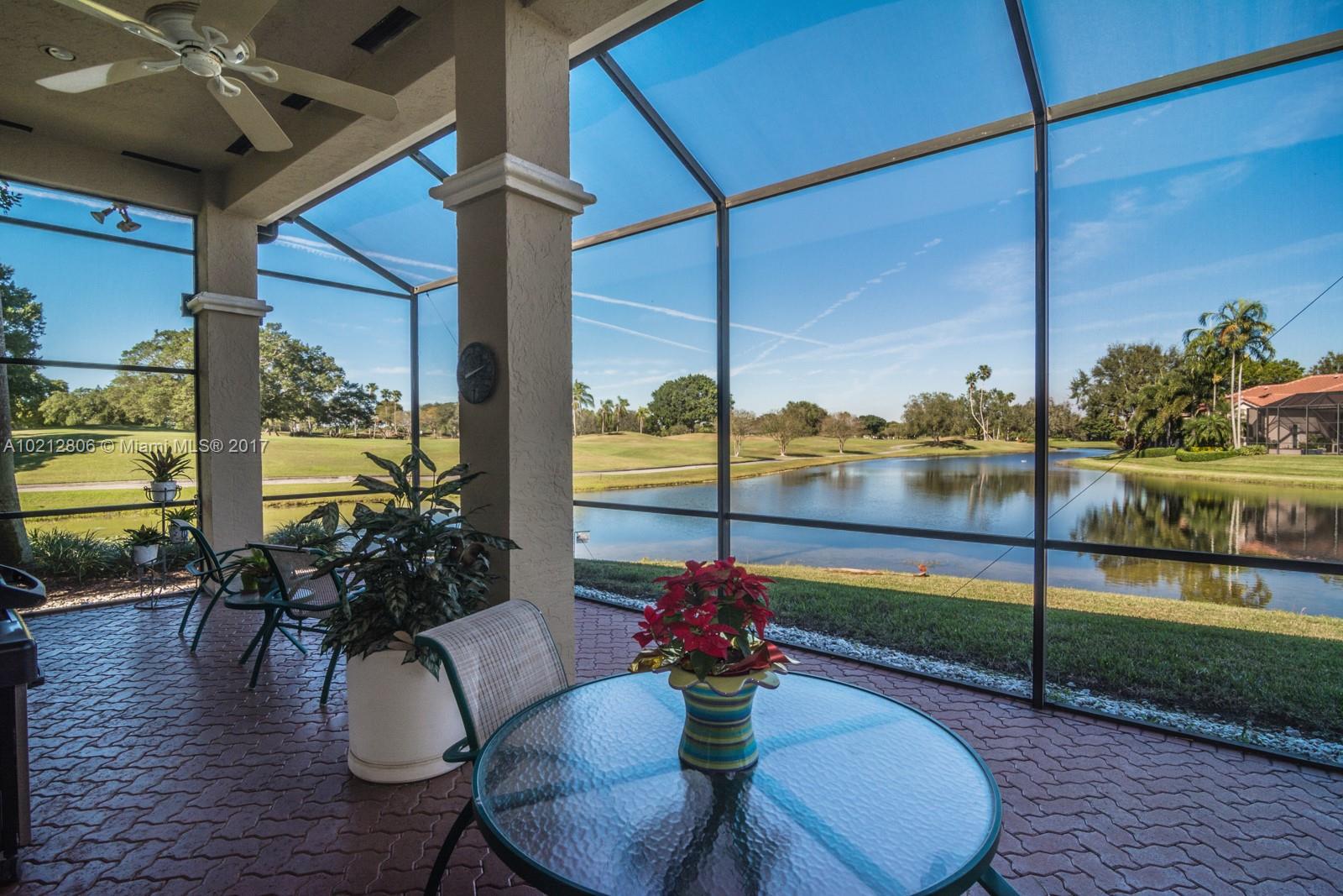 The most spectacular golf and lake views around. Enjoy Long water views from your fully screened paver patio. Wrap around water views from kitchen, great room & master bedroom. Brand New Roof 2016, New A/C, marble flooring throughout living areas. This modified model features a spacious master bedroom with volume ceilings. Secondary bedroom with it’s own bath and murphy bed. 3rd bedroom currently being used as an office with french doors to it's own private patio.