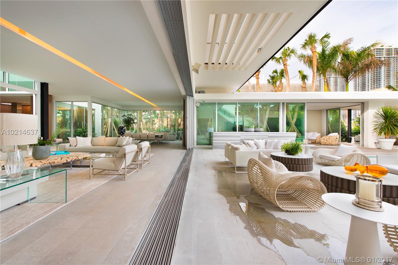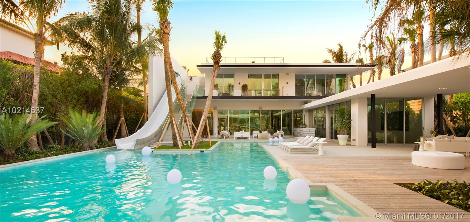 This architecturally distinct home located in one of the most exclusive neighborhoods in Miami Beach was conceived as a self-contained, multi-layered landscape of experiences which takes advantage of both Miami's tropical climate as well the Ocean and Miami Beach views. Elements of the home include stunning views of the Atlantic Ocean from the master bedroom, a waterslide concealed by an elegant glass staircase, a pool with open views and a boat dock that will be built to suit the buyers preferences.