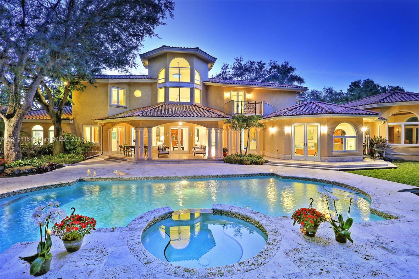 AS TWILIGHT GENTLY BLANKETS PINECREST, A MAGICAL GLOW RADIATES FROM EVERY INCH OF THIS BEAUTIFUL SEVEN BEDROOM 8.5 BATH EUROPEAN-INSPIRED ESTATE FROM ITS GATED ENTRY TO ITS DETACHED GUEST HOUSE, SPACIOUS TERRACE, SHIMMERING POOL, THERAPEUTIC SPA AND SPRAWLING BACK YARD. GRACEFULLY NESTLED ON A FULL ACRE IN THE COMPANY OF MANSIONS ON AN UNPARRALLELED TREE-LINED BOULEVARD IN THE HEART OF PINECREST!THIS HOME IS AN ARTFUL BLEND OF SLEEK, CLEAN ARCHITECTURAL LINES. MASSIVE GALLERY WALLS. CLASSICAL DESIGN ELEMENTS, EASY TO PERSONALIZE WITH YOUR TASTE. THE FOYER OPENS TO A SPECTACULAR OCTAGON-DESIGNED TWO-STORY LIVING ROOM, BEAUTIFUL SWEEPING STAIRCASE, MARBLE FLOORS & INLAYS, IMPACT GLASS, STEPPED CEILINGS, SECLUDED MASTER, RAMBLING TERRACE, POOL & SPA. UNDERSTATED YET ELEGANT. PINECREST ELEM.