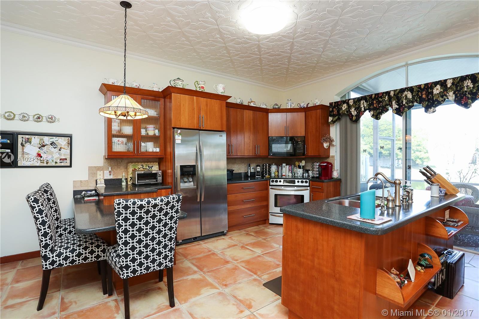 Unique remodeled lakefront home in the sought-after Maple Ridge gated community. This 2-lvl, 2-garage home boasts 20' ceilings, great room; separate dining area, Euro-style kitchen with commercial stainless steel appliances & Corian counters, cherry wood cabinets, and built-in curio cabinet; custom screened brick-paved patio overlooking the lake; master bedroom with sitting area; luxurious master bath w/spa tub, separate shower & marble surround; loft; and hurricane shutters.