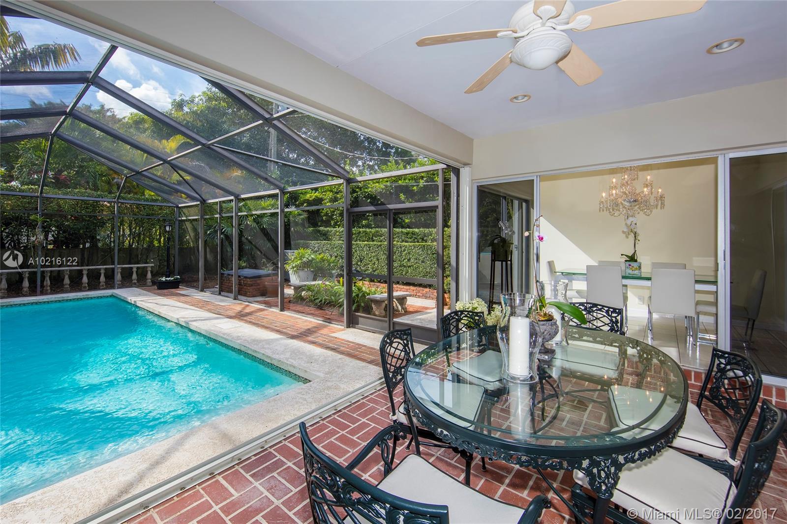 South of France inspired Jewel box home in central Gables, a short walk to restaurant/galleries/shops/cinema/ Biltmore/Venetian Pool/golf.One story original details, lovingly restored & updated.Brick driveway and electric gate courtyard lead to foyer and spacious living room.Statuary marble and elegant black wood kitchen features top of the line appliances.Sunny breakfast/DR.Covered patio, sparkling pool and garden.3rd room used as office/media.New 2015/2016 roof/ac/gutters/electric and garage door. SF from Tax Roll.