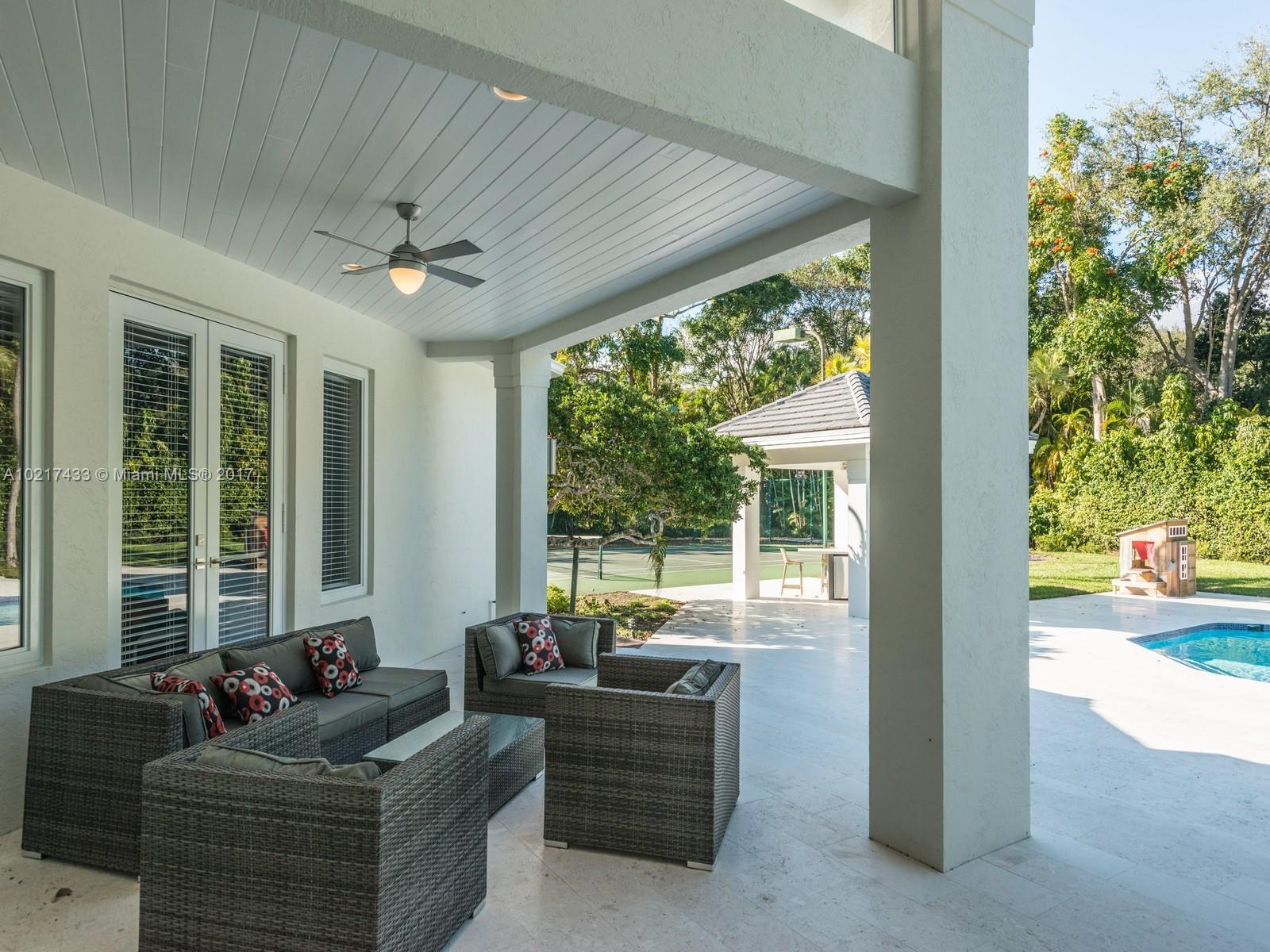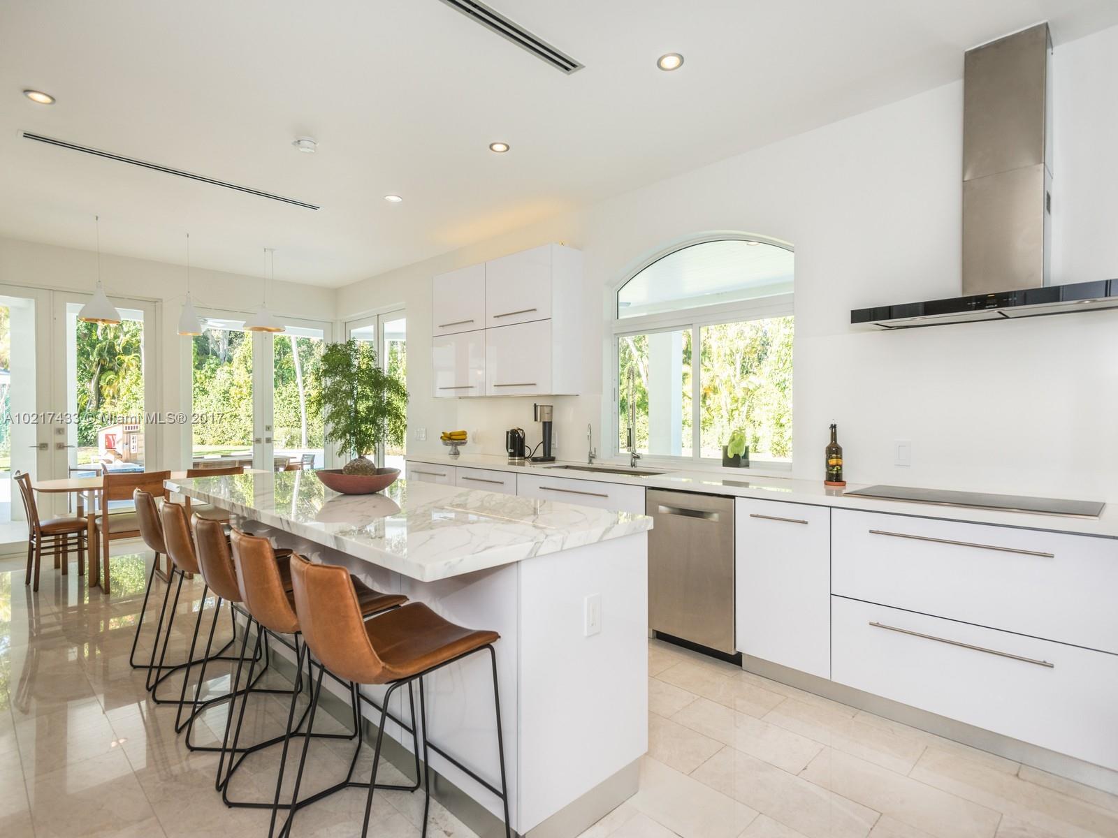 Updated Contemporary Estate nestled in North Pinecrest. Features include Birch Wd Floors in the Formal Areas, Marble flrs in Kitchen/bathrms, expansive open space, indoor laundry rm, impact , fireplace. Custom Kitchen includes Sub-Zero with wine cooler, wolf cooktop/convex micro, walled oven, cooktop/hood, cooking island, marble tops, breakfst nook. Second floor features Birch Wd Floors with oversized Master Suite /6th bedrm. Master bath w/ sep tub/shower/marble. Balcony overlooks tennis Court/Acre+ oasis