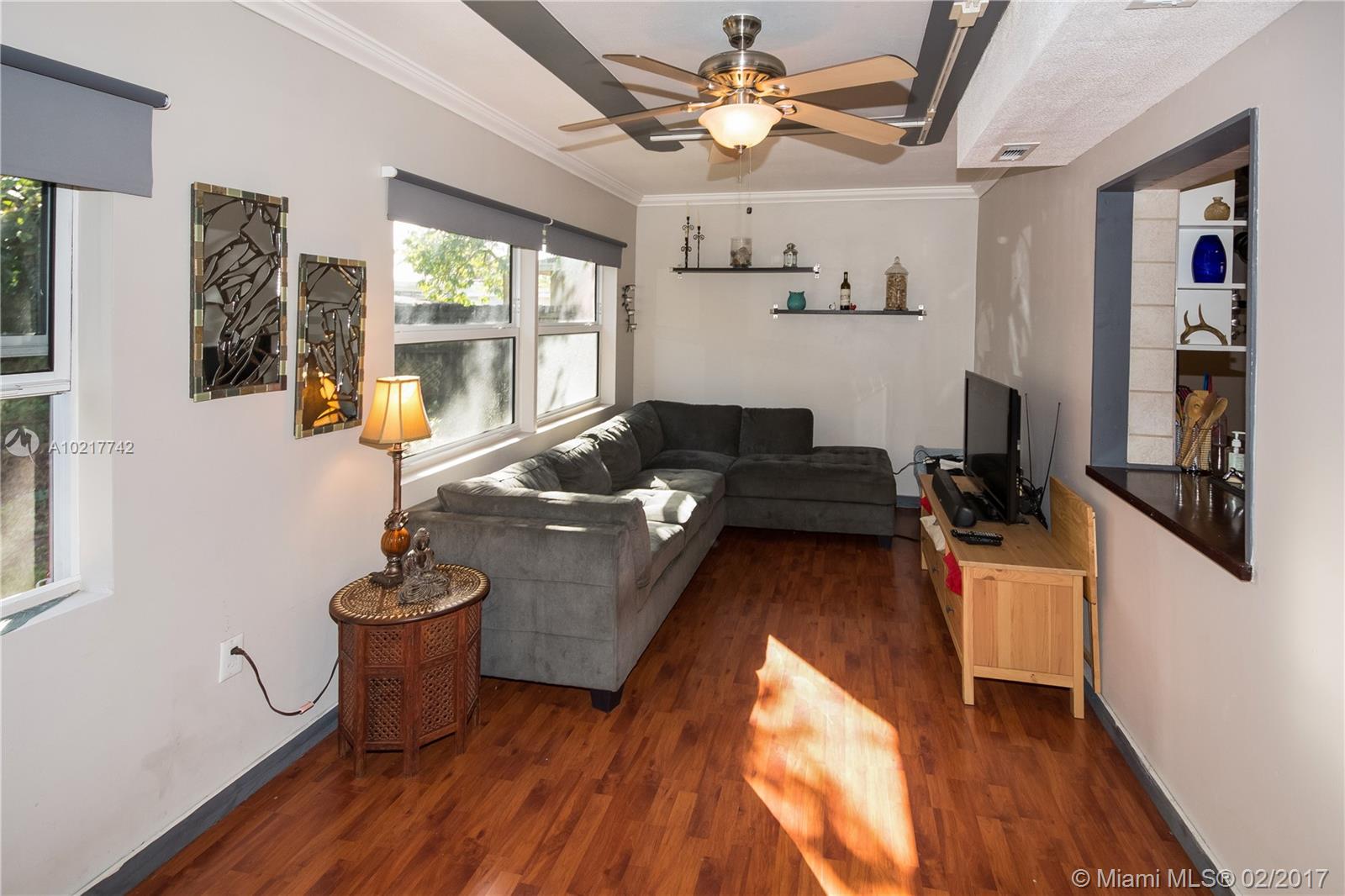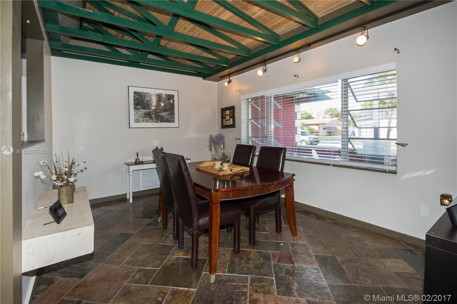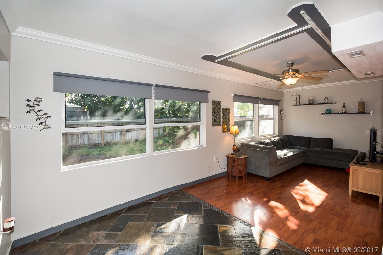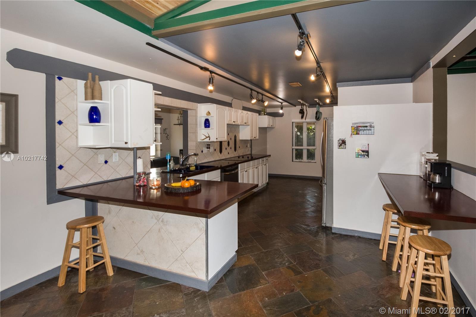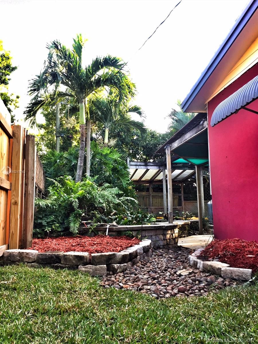 Beautiful and Stylish 2-Bedroom Home in a Quiet Residential Community. Energy efficient features include LED track lighting, high-tech appliances and tank-less water heater. Stylish ceiling with exposed truss and tongue/groove white cedar. Slate tile floors have been professionally cleaned, sealed and glossed. Water filter system for the whole house!!! Completely fenced. Serene backyard with a 1500-gallon Koi fish pond, lush trees and fruit tree (mango tree.) Impact windows. Newer roof. A must see!!