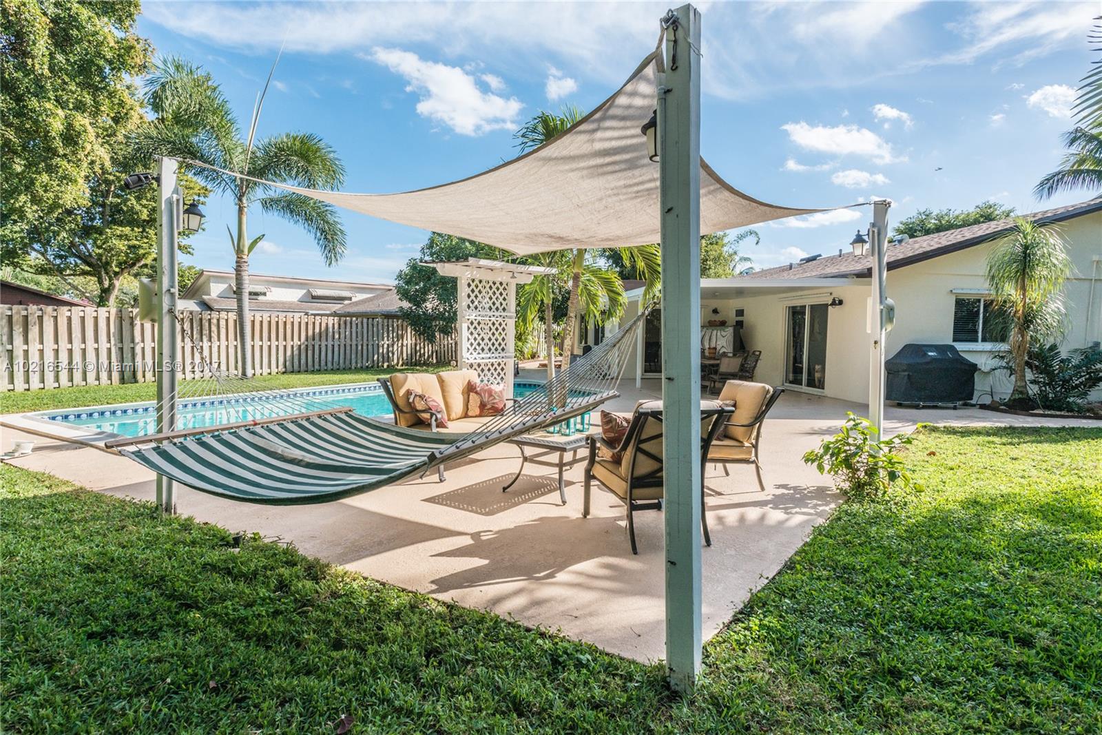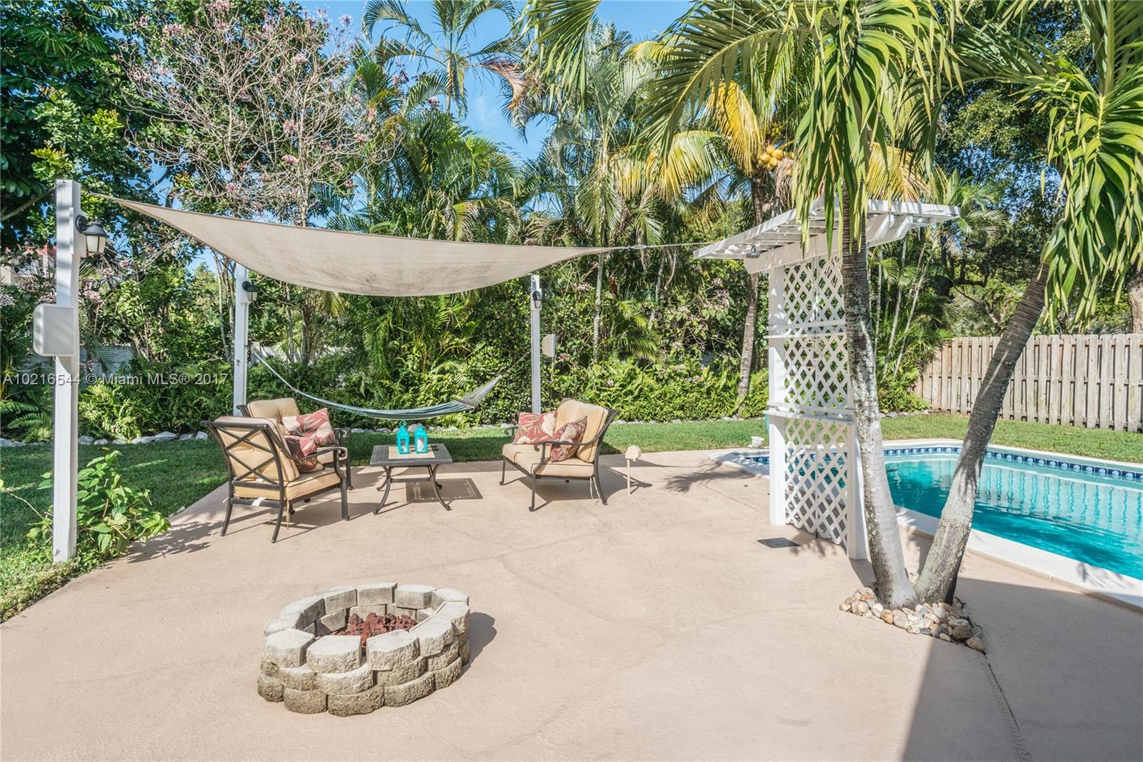 Escape to your own tropical oasis. This 3BD/2BA features all the comforts you expect in a home. Open layout makes for a flexible space. Kitchen has stainless steel appliances, eat-in kitchen and plenty cabinet space. Master suite has walk-in closet, sliding glass door overlooking pool deck, glass encased rain shower. Covered patio, sprawling backyard, gas firepit, sparkling pool, great to entertain. Landscaping provides privacy and tranquil breezes. Bring your pickiest buyer, home will not disappoint.