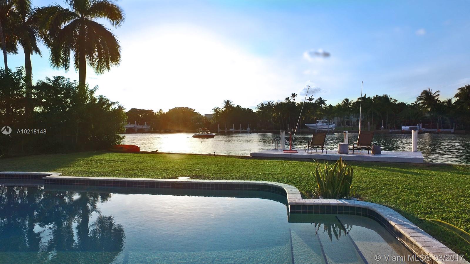 Unique Oversized waterfront lot (14,400SFT) across from the very exclusive Indian Creek Island. Extremely secure in a very friendly and family orientated neighborhood. Close to the Beach, shops. A+ School. 4Bed/4Bath + a den, and a pool. Direct ocean access w/80FT waterfront and sunset views Easy to show